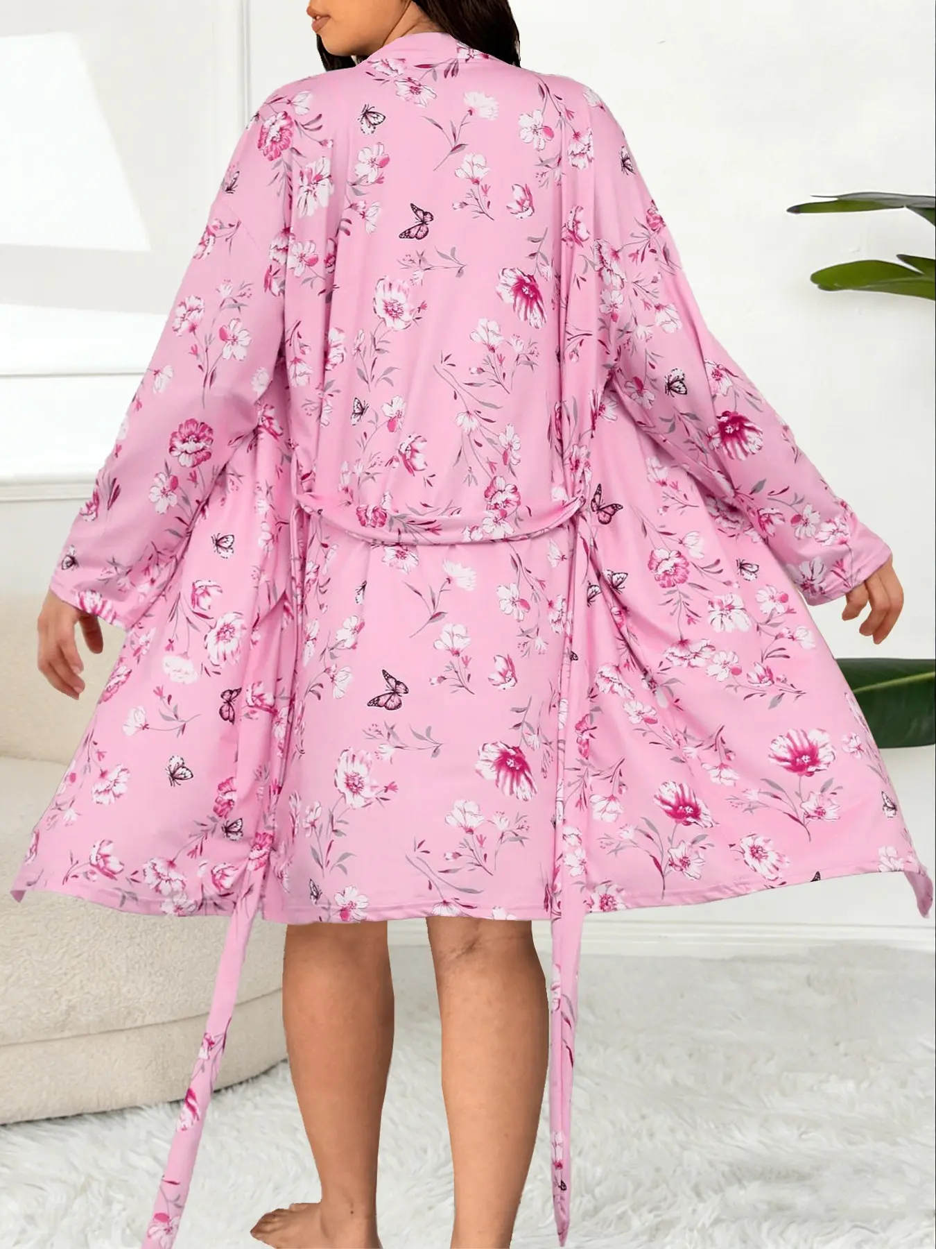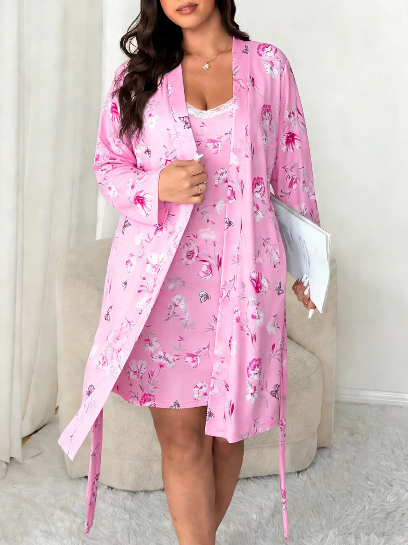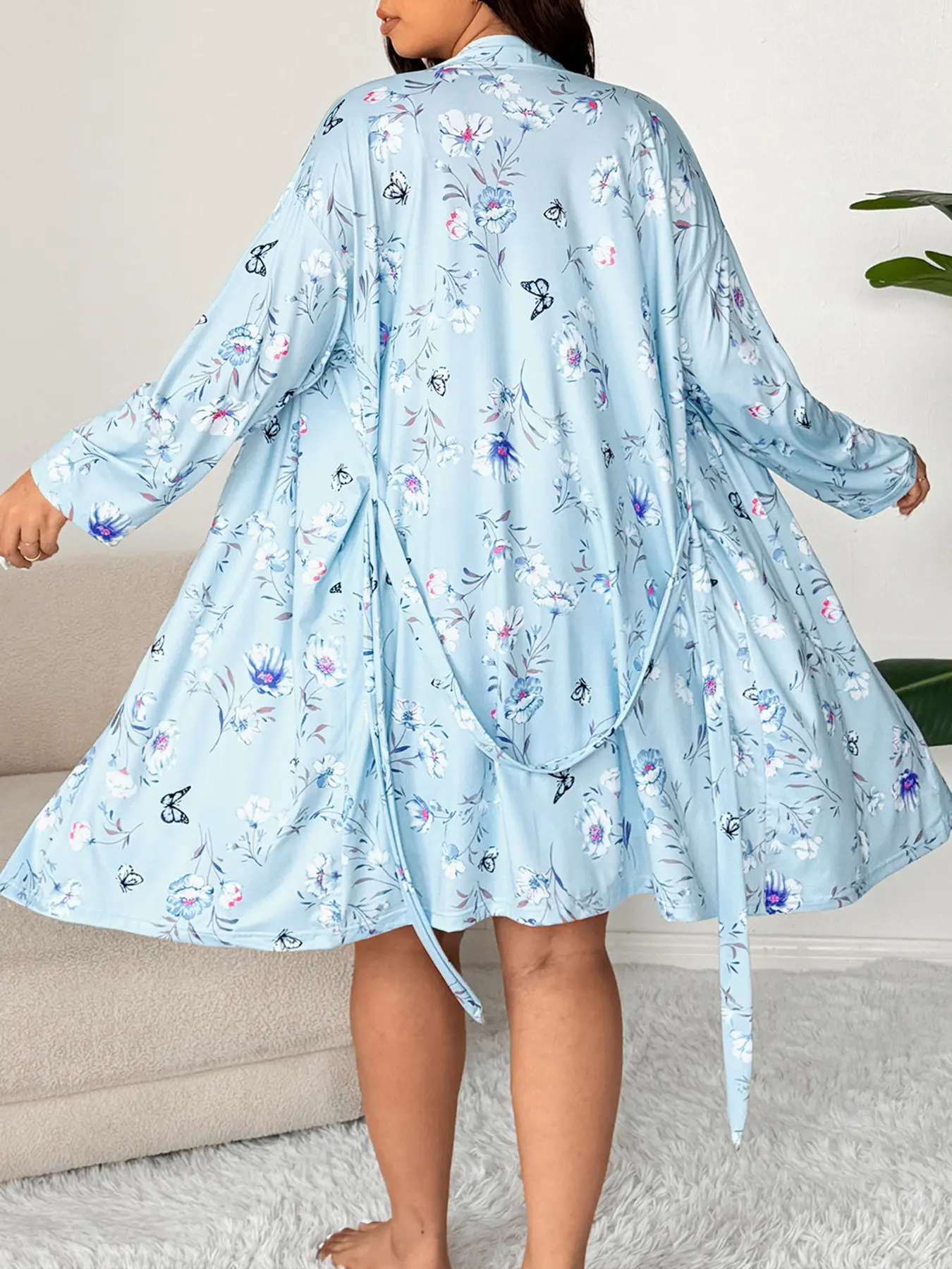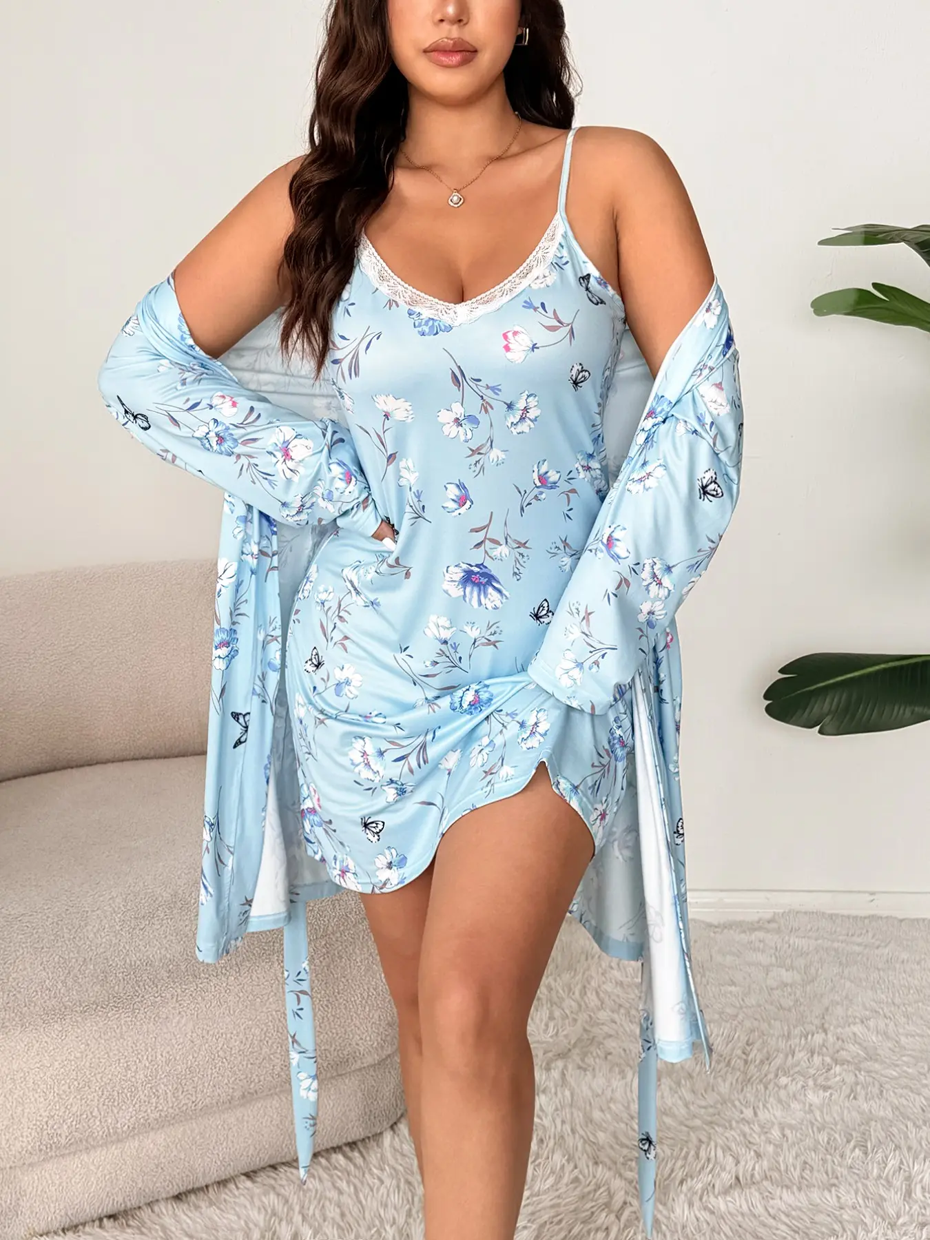 【Plus Size】 Floral Print Cami Dress & Belted Robe Two-piece Set, Casual Soft Comfortable Pyjama Set for Women, Women's Sleepwear for Spring & Fall #loungewear #plussizesweatsuit #2in1gown #loungewearsets #plussizebirthdayoutfitideas #comfy2piecesets #flatteringloungewear #plussizejumpsuit #plussizevalentinesdayoutfits #plussizebeachwear