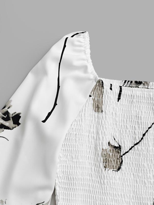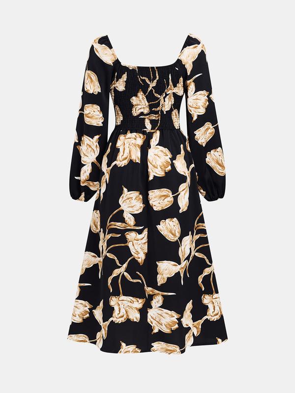 Women's Floral Print Dress, Elegant Fashion Casual A Line Dress for Daily Outdoor Wear, Women Dress for Spring Fall