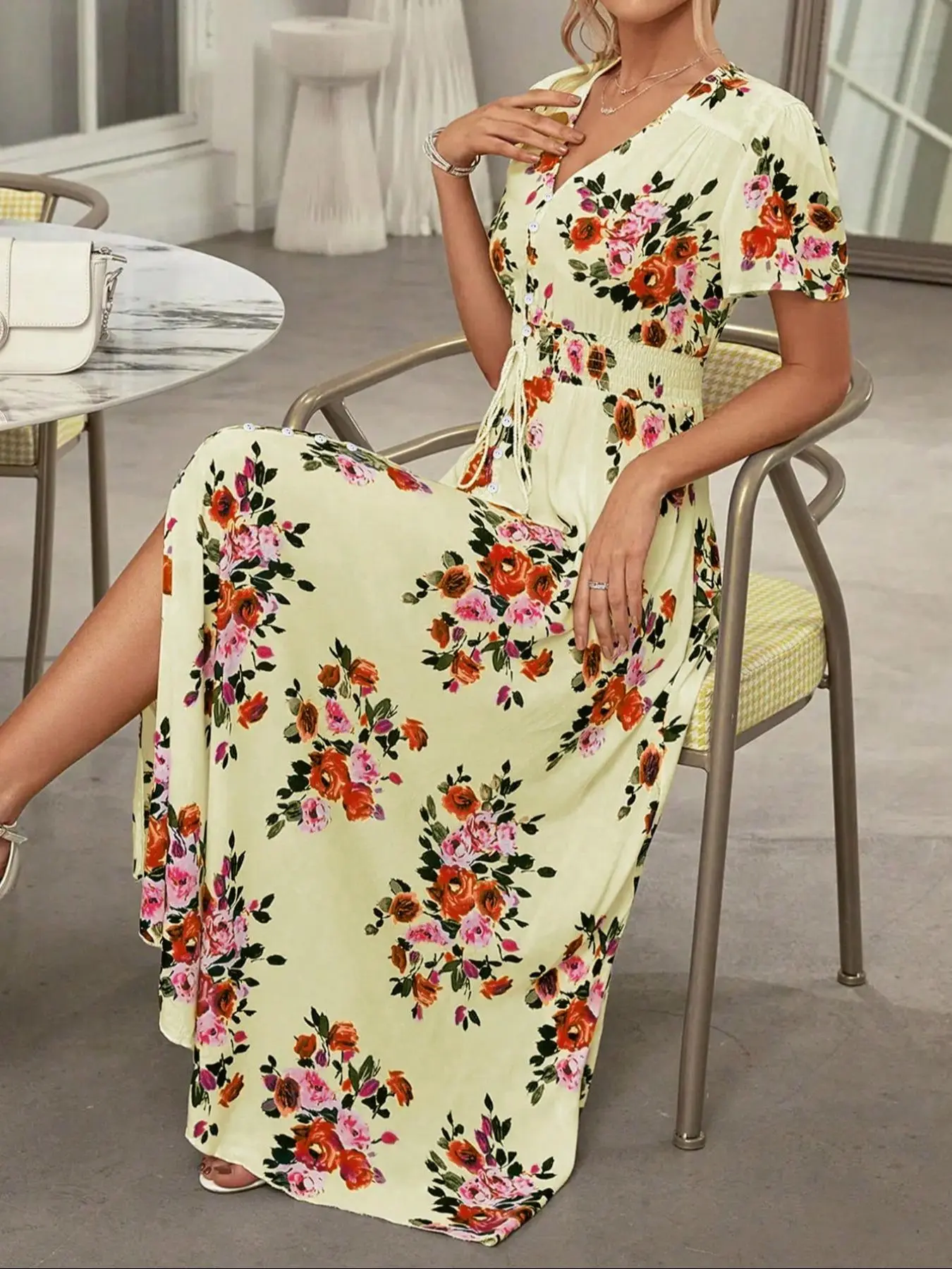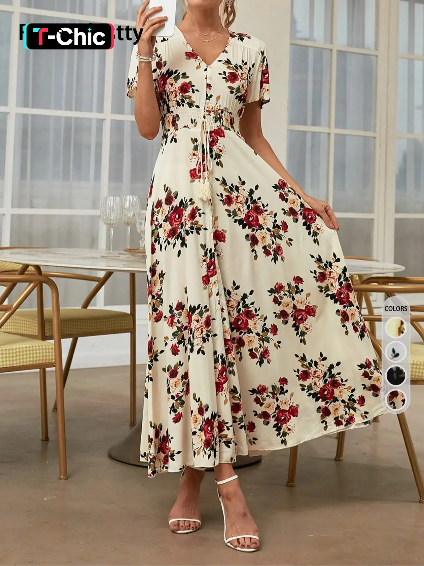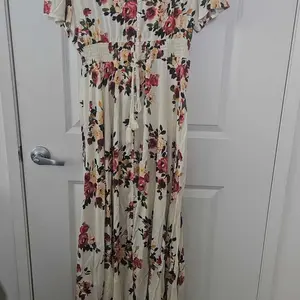 Absolutely love this dress it's beautiful The color is beautiful for the summer You can wear it for church or for a wedding for whatever occasion to you might think you needed is the perfect dress you will not regret getting this stress. I absolutely love it. However, The dress runs a little big !!