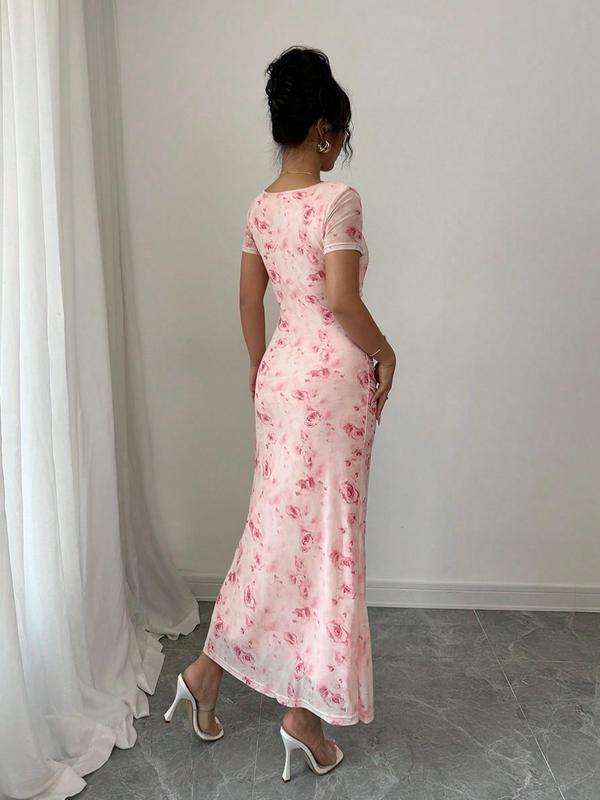 Elegant Women's Floral Print Dress, Chic Aesthetic Short Sleeve Design, Perfect for Parties & Weddings, Ideal for Summer Wear #floralmaxidress #prettygardenclothing #tiktokdress #amazonholidaydress #trendingdresses #loungedresses #hotdresses #floralweddingdress #maxidressoutfit #viralpromdress