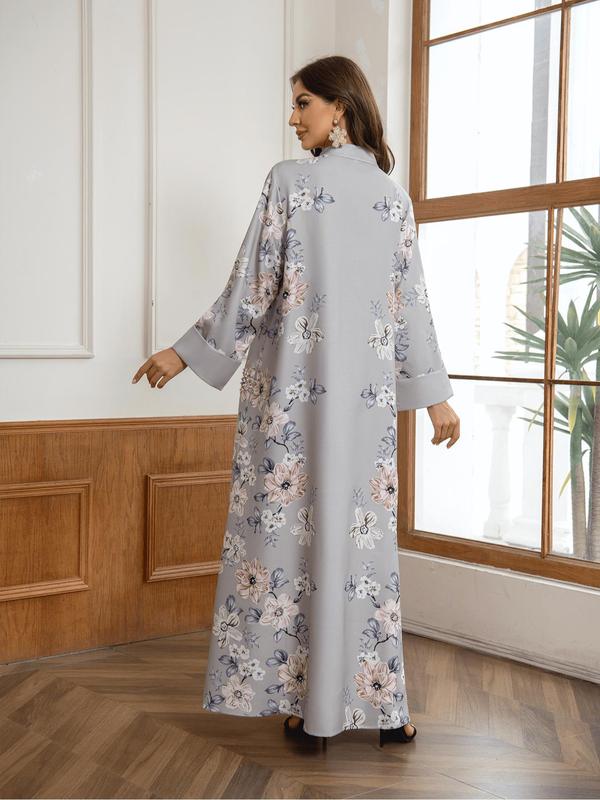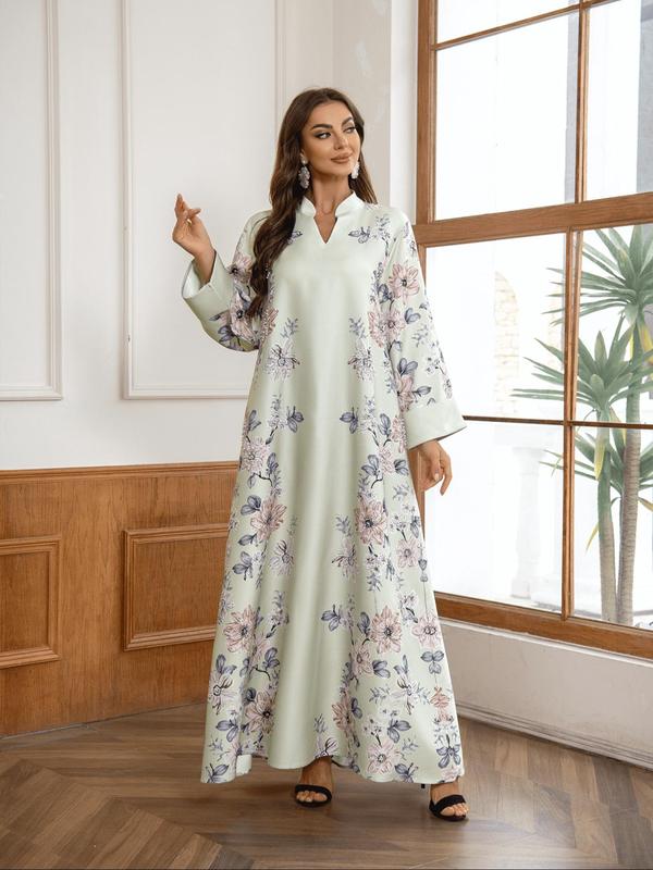 Women's Floral Print Long Sleeve Dress, Elegant Fashion Casual Modest Style Dress for Daily Outdoor Wear, Women's Islamic Clothing for All Seasons, Classy Modest Dresses, Modestdresses