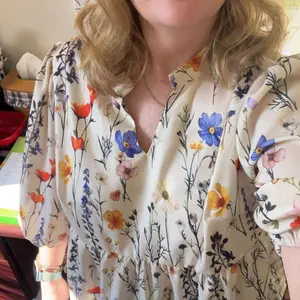 Nice spring shirt, super flowy And lightweight. Love the cream color, is not see-through at all. Fits true to size cute puffy sleeves.