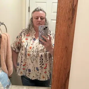 Love this BoHo style shirt it's nice and cool and breathable. I got the 2X and it fit perfect. The seam Under the chest is perfectly positioned and it's flowy