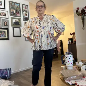 I really like this shirt when I saw it. I’ve waited a little bit to see if it went on sale, so I got it..but I don’t care for the way that it looks. I don’t care for the puffy sleeves and the off-white color is just looks like a yellow. So I’ll be returning this one.