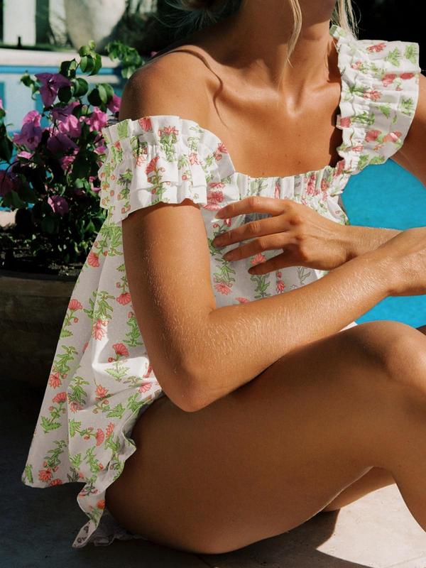 ·Feature:This pyjama set with elastic drawstring shorts,side ruffle detail elasticated panel at back of top and lotus flower print,will make you feel glamorous while offering incredible comfort