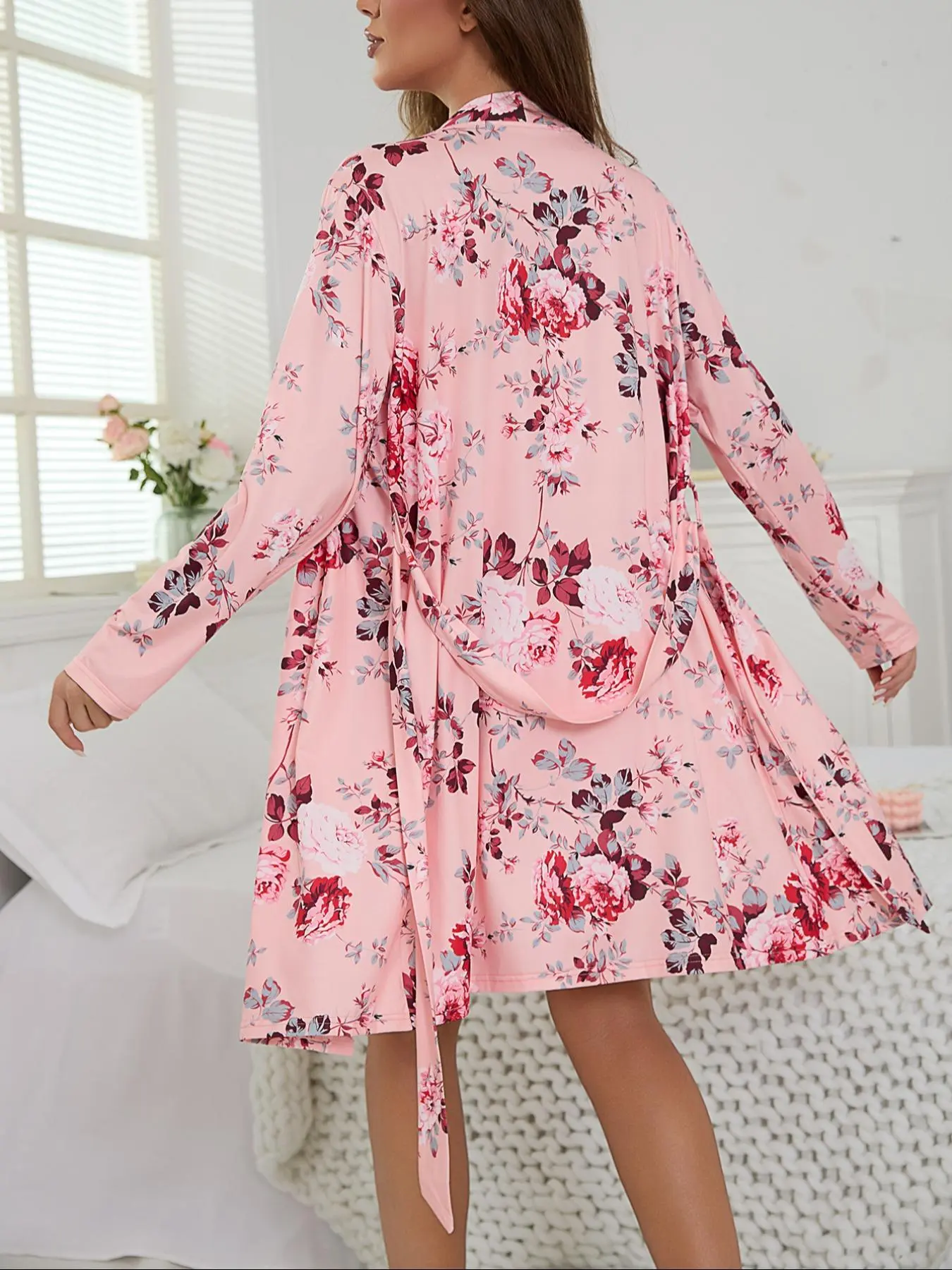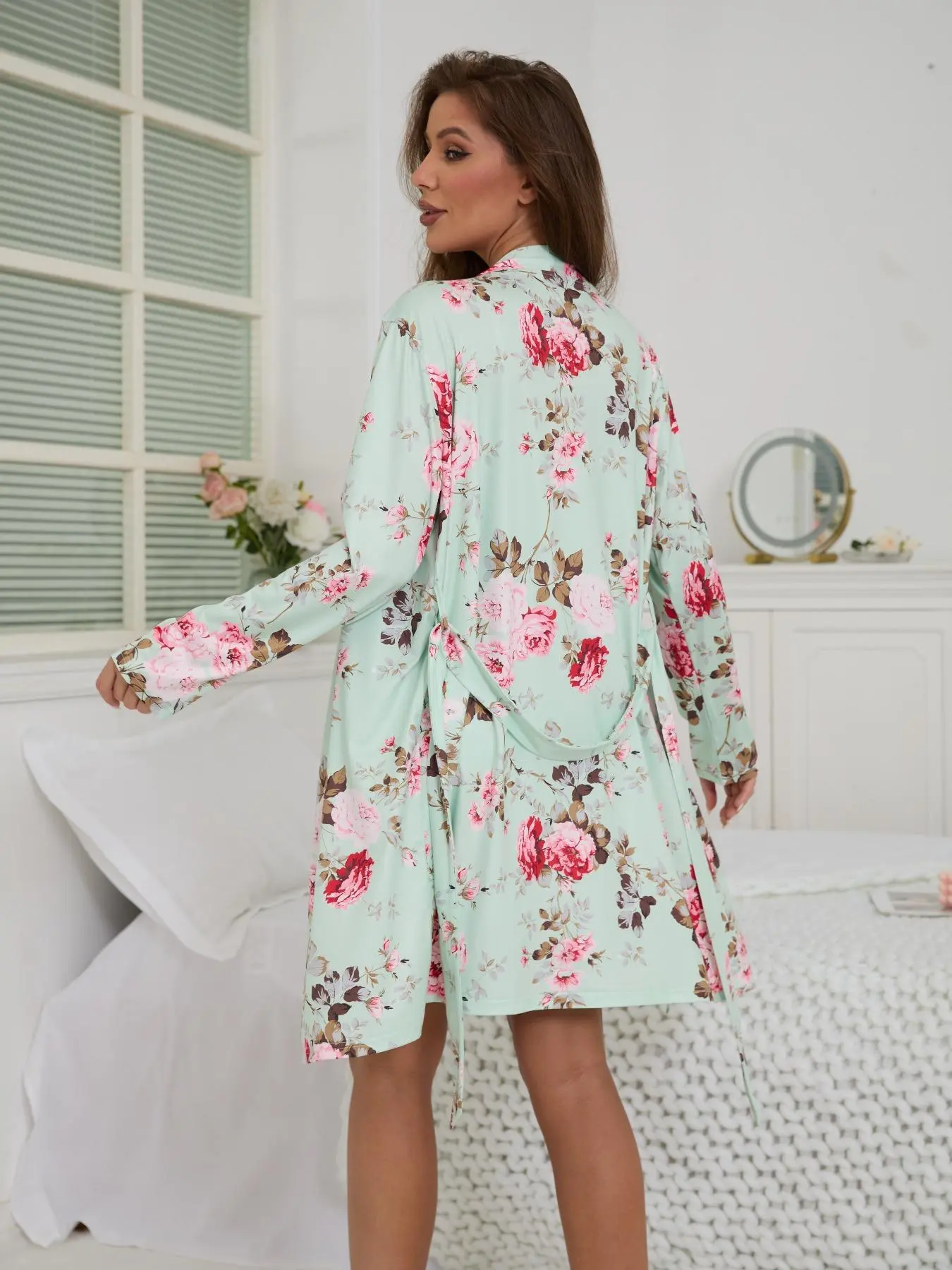Women's Floral Print Belted Robe & Cami Nightdress Two-piece Set, Casual Comfy Loungewear Set for Women, Ladies Sleepwear for All Seasons