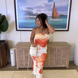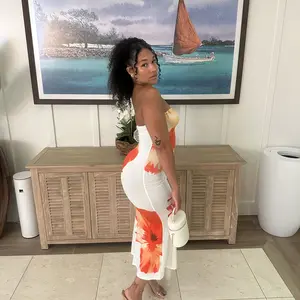 Women's Floral Print Tube Dress, Casual Strapless Long Dress for Summer, Fashion Women's Dress for Beach Holiday, Womenswear