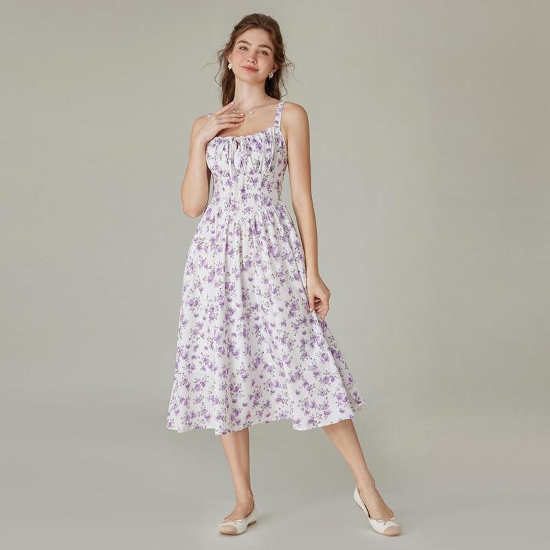 Feature: The floral dress hits at mid-calf, providing a flattering length that flatters most body types. This feature allows the dress to be tailored to the individual's preferences, providing a custom fit. The corset dress has a square neck with strings, smocked back bodice, and flared A-Line silhouette, making it a fashion-forward choice.