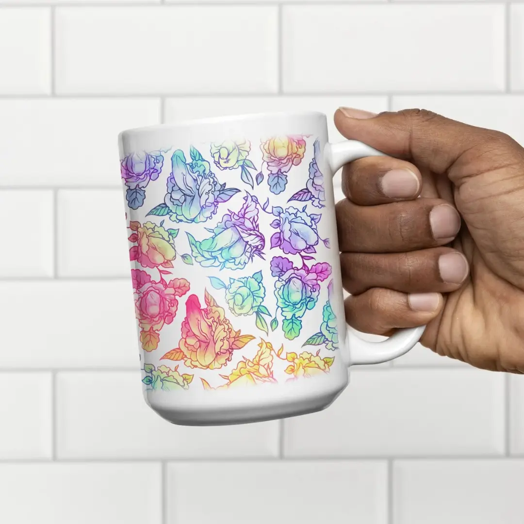 This is way more than a floral rainbow coffee mug. Let me know if you see the hidden images. #naughtymug #adultgifts #kitchenproducts #drinkware #coffeemug @LookHUMAN