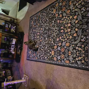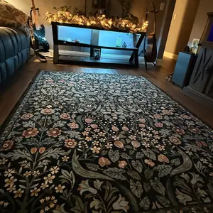Nice washable rug for the $ I threw it in the dryer for about 10 minutes to get the folding marks out. The design is so flipping cute and goes with my cottage core decor. 🖤