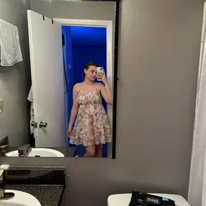 This dress is very cute but a little different than expected. I feel like the color and pattern is a little off. I’m glad I sized up and went with a medium because it does run small.