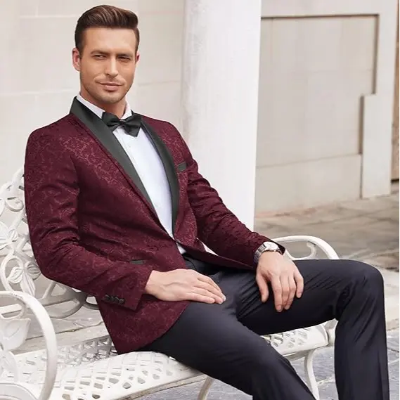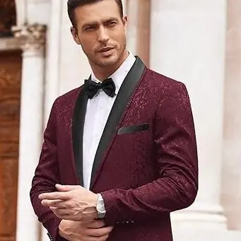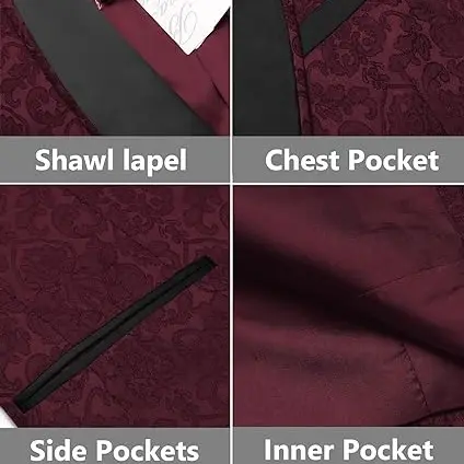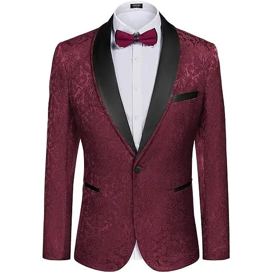 ·【FASHION DESIGN】: The single-breasted blazer is feature with shawl lapel, single breasted one button closure, four-button cuffs, 1 chest pocket, 2 side pockets, 2 inner pockets. Superior jacquard floral pattern, unique and shiny jacket. This design makes men fashionable, professional, energetic and confident.