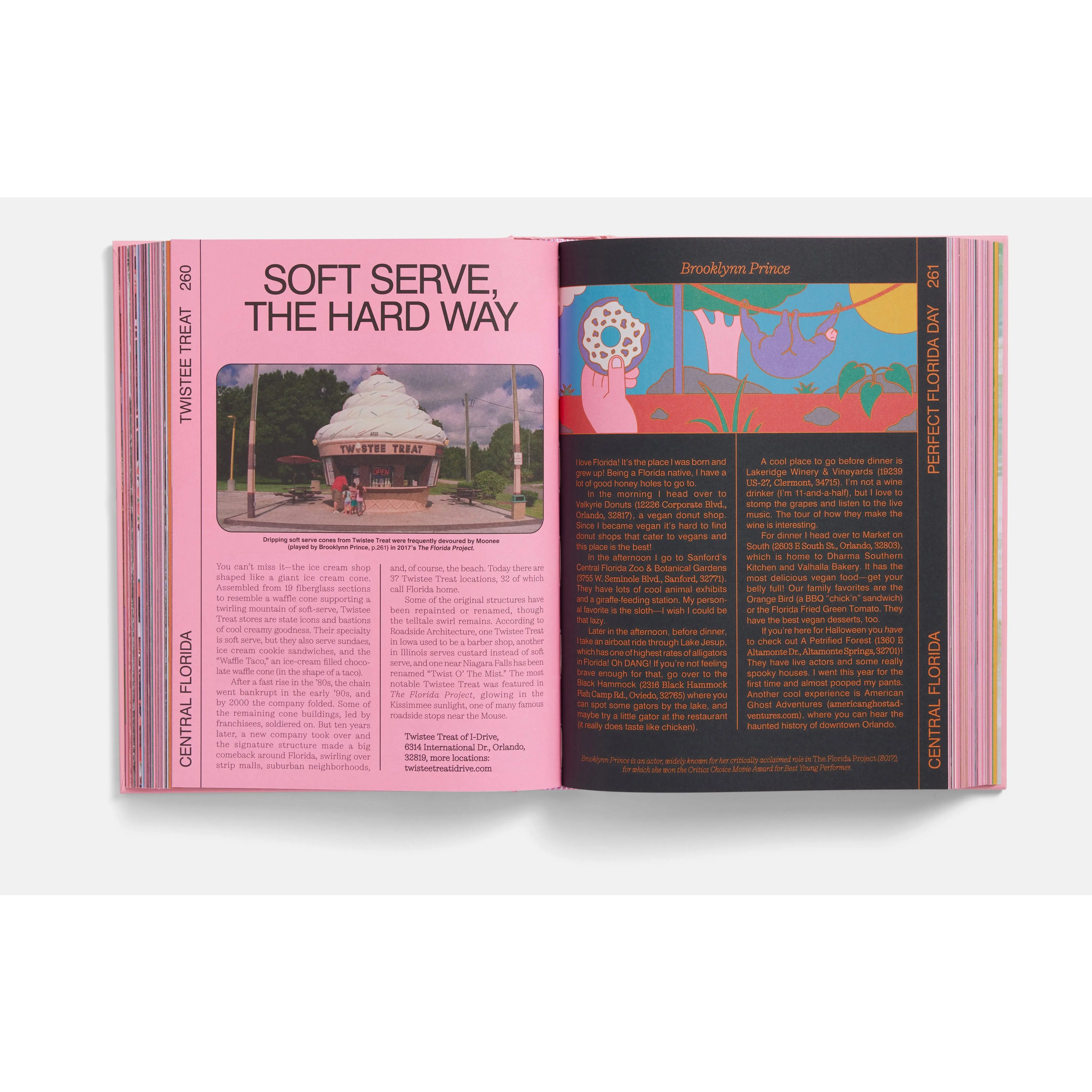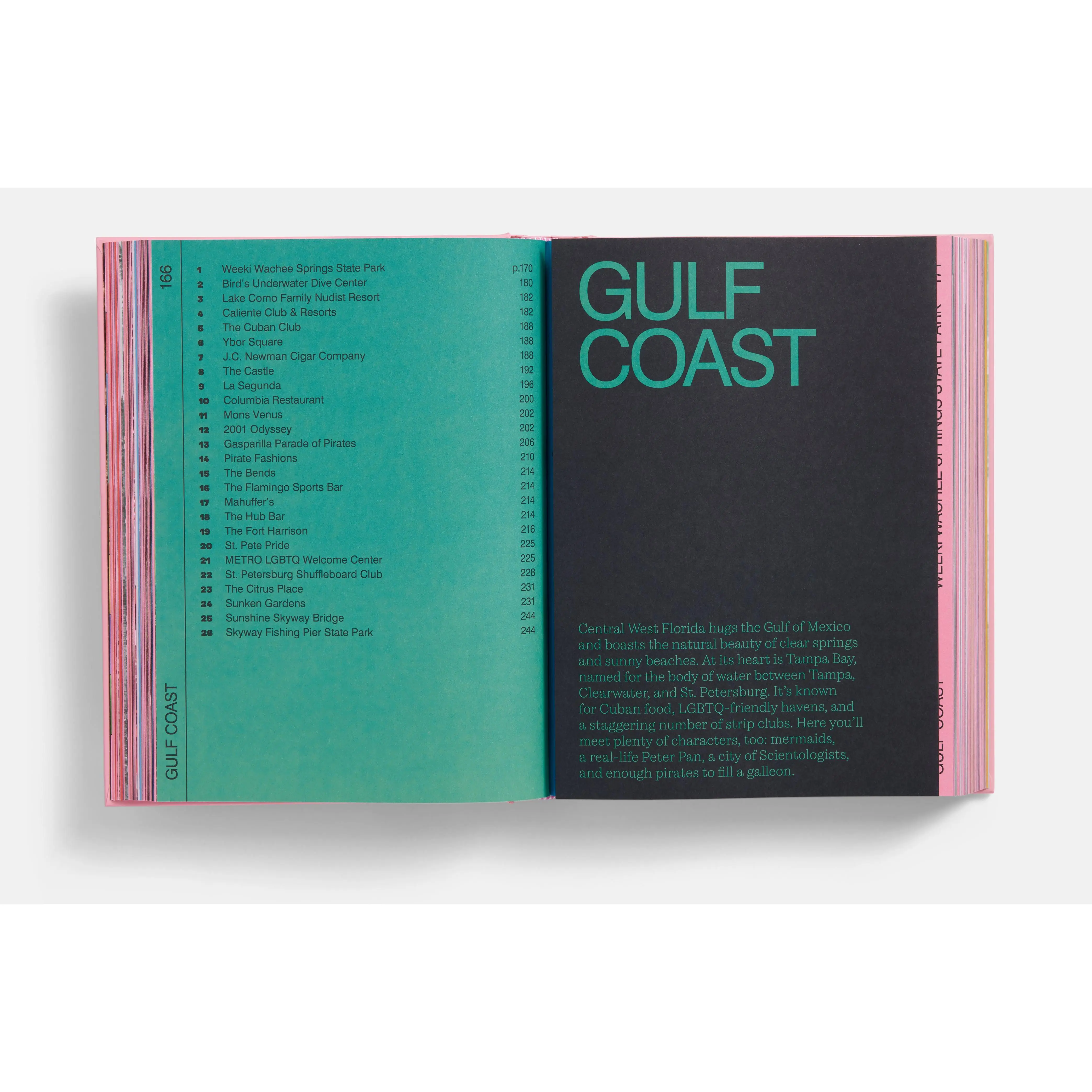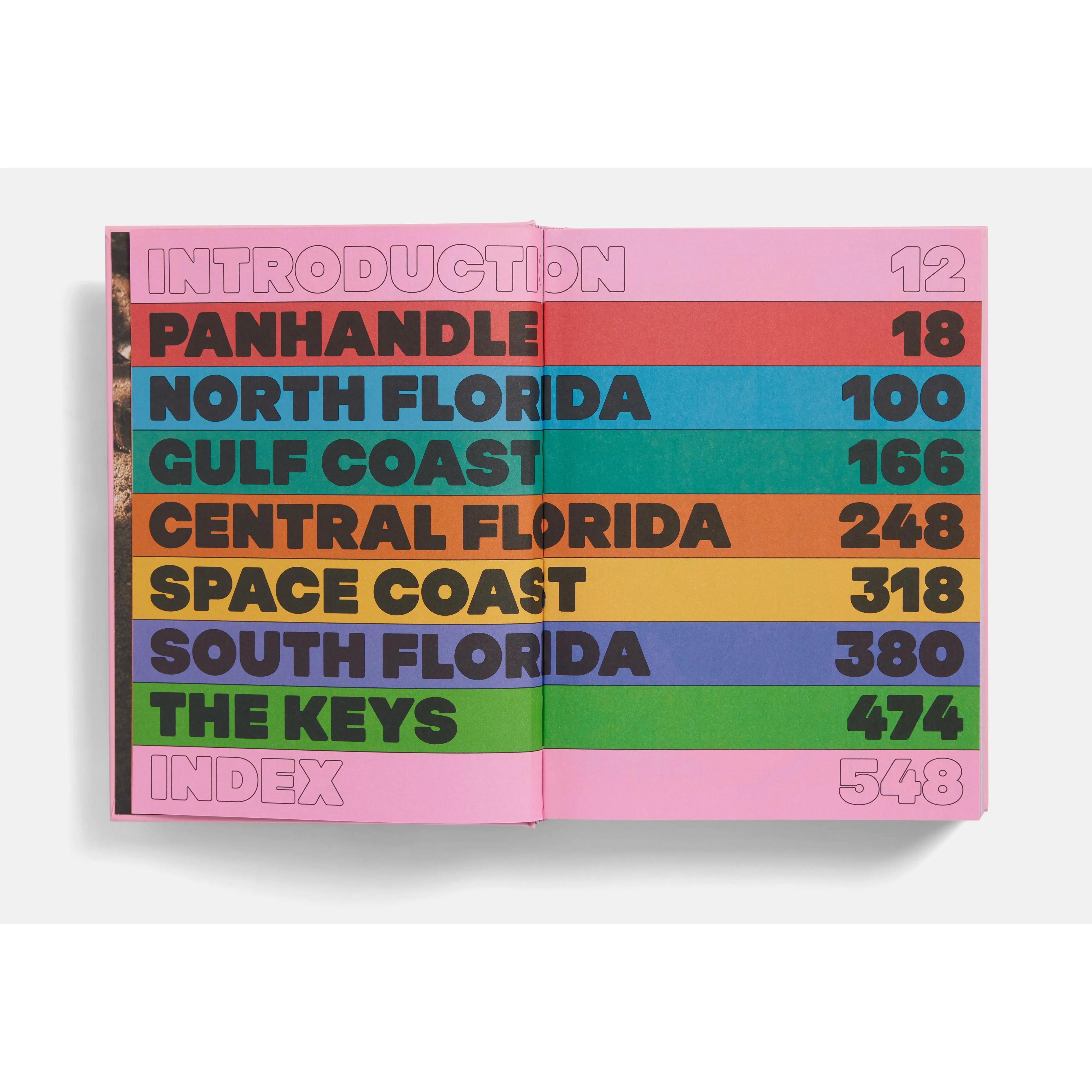 Welcome to Florida! Your new 576-page, hyper-local guide to the most far-out state in America.  Flip through for tips on trips to the destination beaches of the Redneck Riviera, to the largest nudist colony in Pasco County (and the country), all the way over to the coleslaw wrestling arenas of the Space Coast. Through 7 chapters broken down by region, and with hundreds of the Sunshine State’s best kept, strangest secrets, Florida! has a pit-stop for everyone.