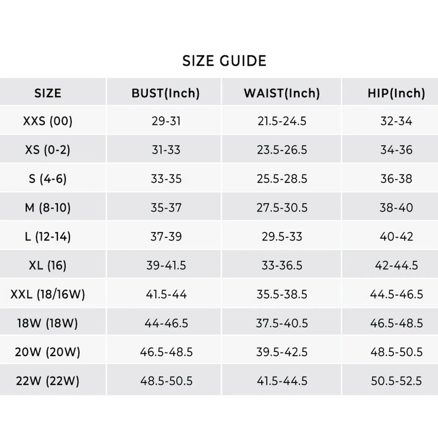 ·Multiple sizes are available, including XXS (US 00), XS (US 0-2), S (US 4-6), M (US 8-10), L (US 12-14), XL (US 16), XXL (US 18), 18 Plus, 20 Plus, and 22 Plus. Please choose the most suitable size according to the detailed size measurement chart.