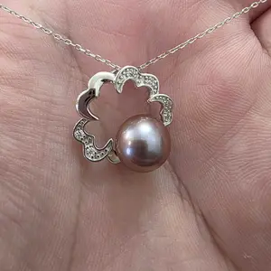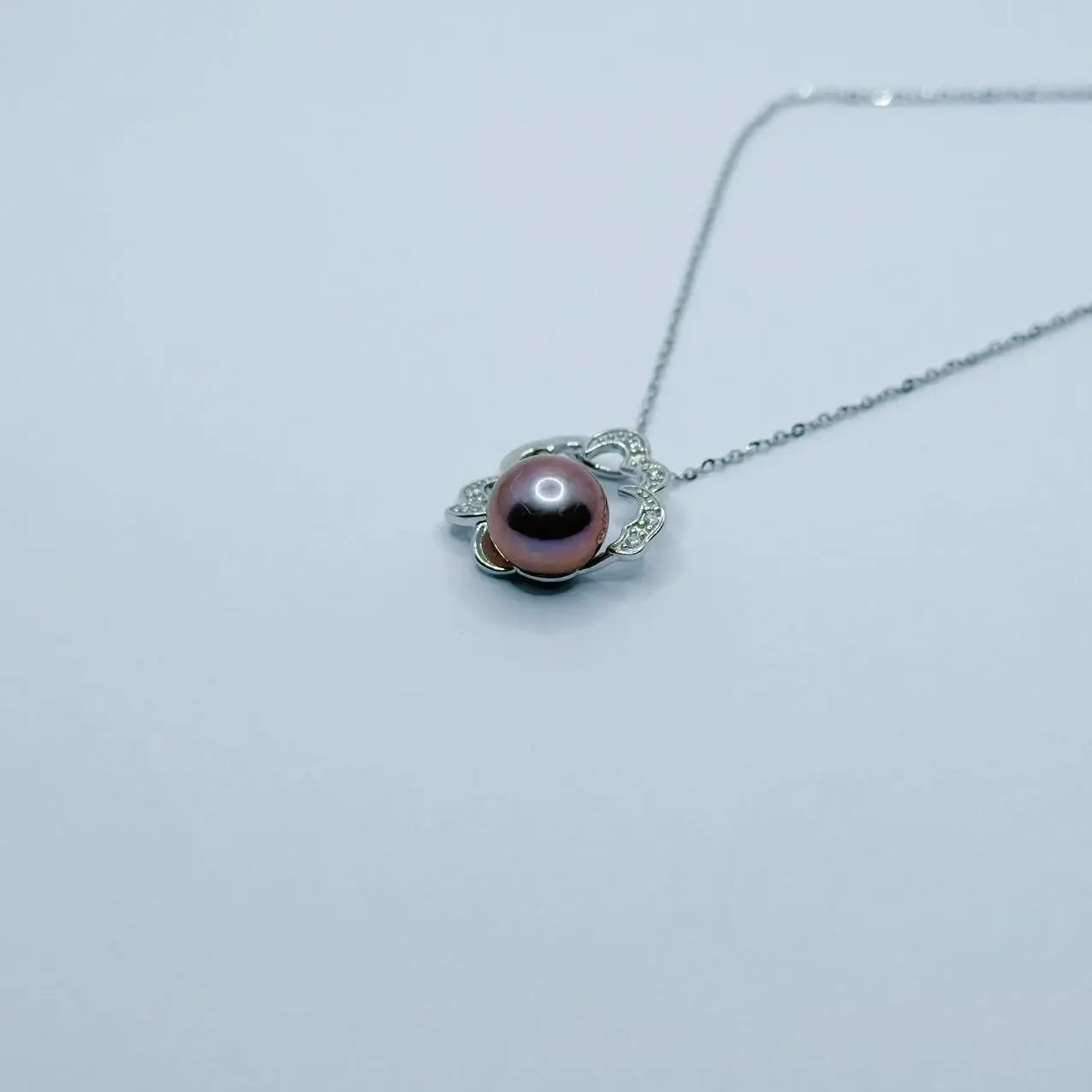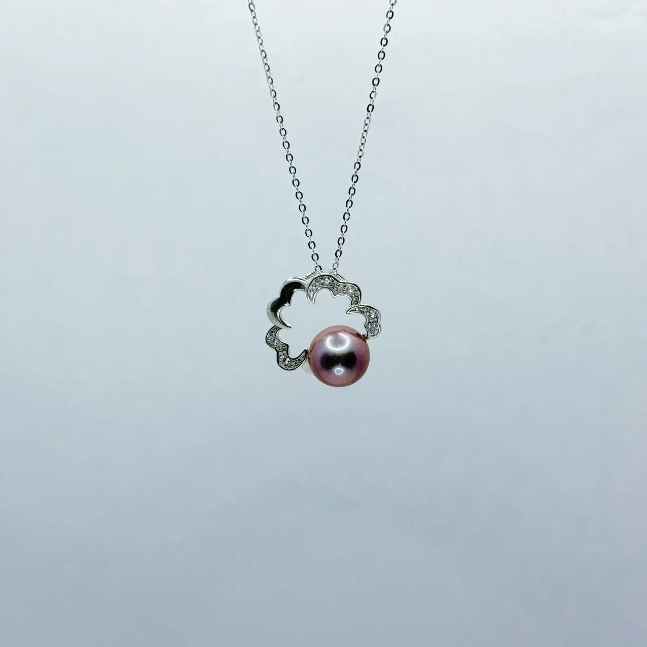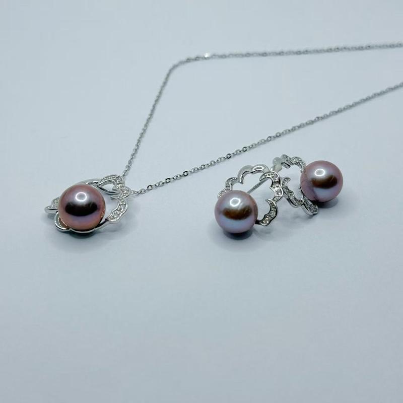 PEARLISM Flower Design Edison Pearl  Earring Pendant Jewelry Set (9-10mm) -AFES003
