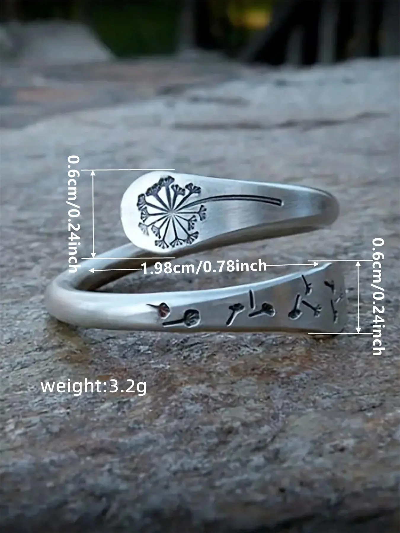 “Some people see a weed.Others see a wish” I ABSOLUTELY love this. I bought one for my daughter. It can be slightly adjusted for fit. It does have more shine than the picture. Not so much of a flat finish. I 1000% recommend this !!! I love it as a thumb ring .