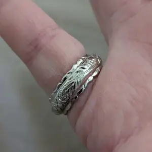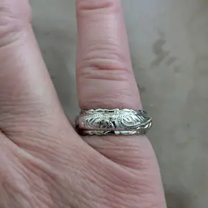 It fits exactly the size I need it to be , I would say it kind of thicker than a normal band but still good .. but for me it’s is slowly tarnishing since I wear my rings everyday and in water ..so be mindful
