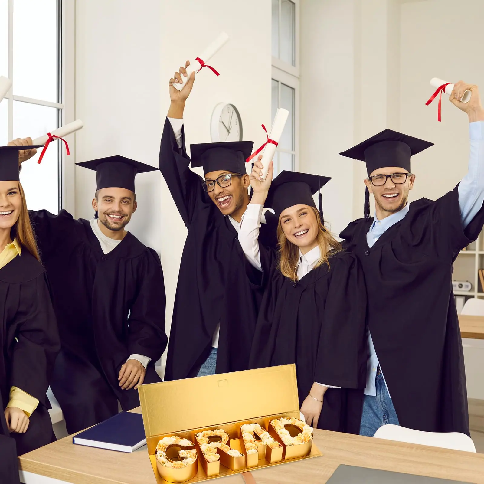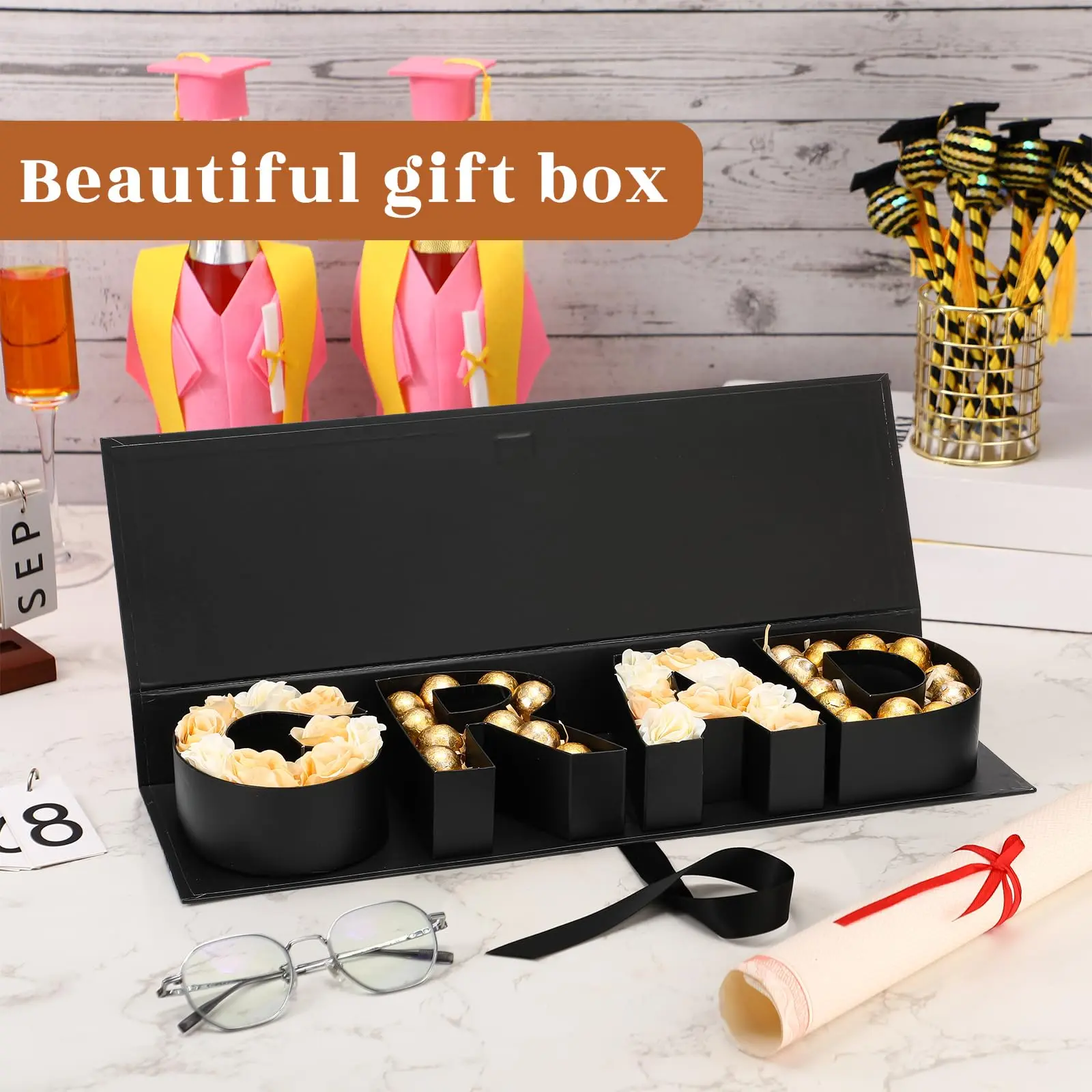 ·Ideal Graduation Gift: This letter fillable paper gift box can not only hold roses, cattails, and other floral arrangements but can also be filled with assorted treats like chocolates, cookies, and cupcakes. It can serve as a creative and romantic gift for girlfriends and classmates