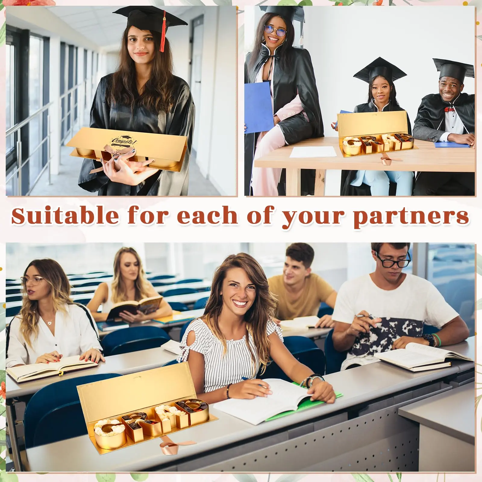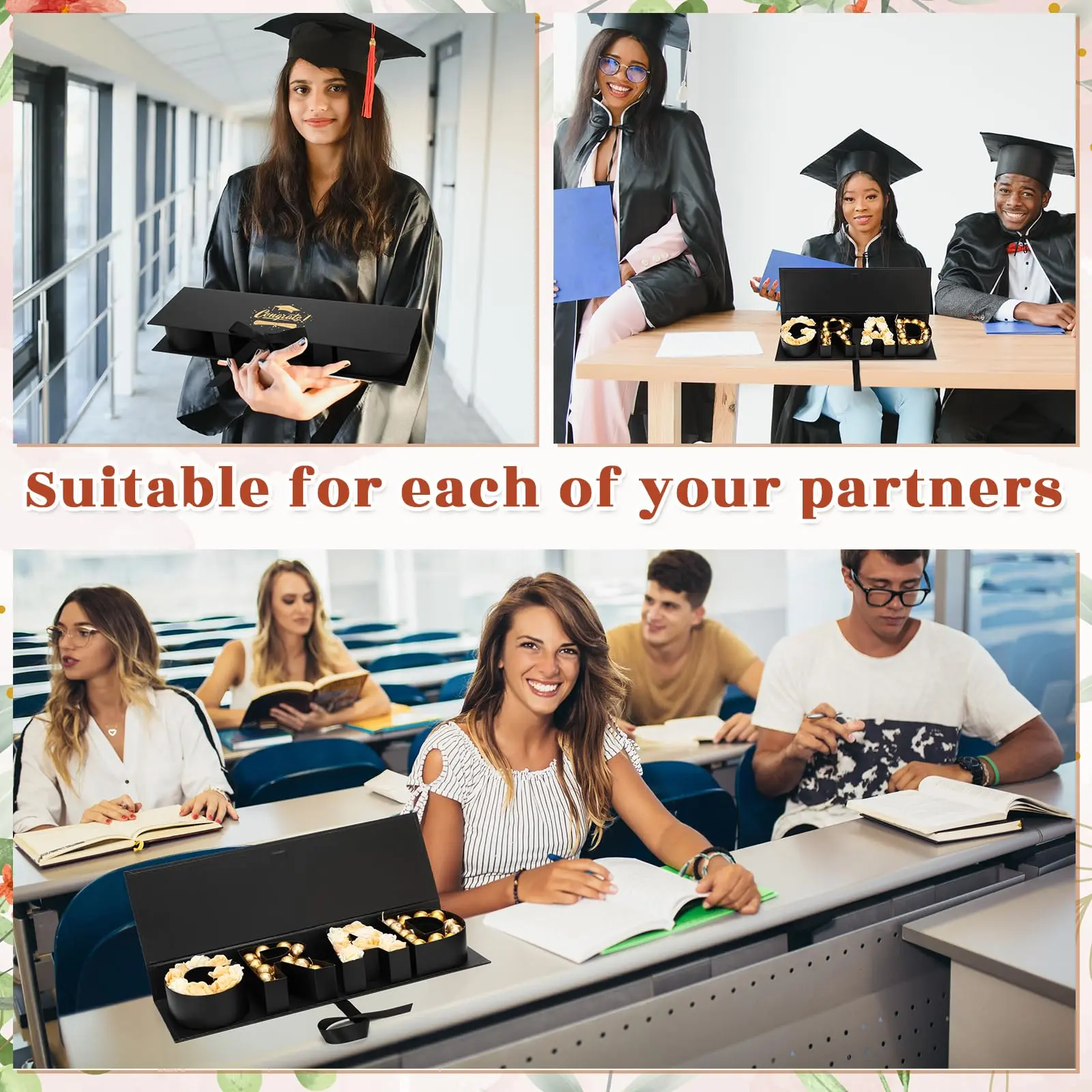 ·Ideal for Grand Occasions: Designed as a graduation cap, this flower favor box invites guests to leave in their gifts and blessings. Ideal for junior high, high school, and college graduation ceremonies, it embellishes the celebratory vibe of the occasion