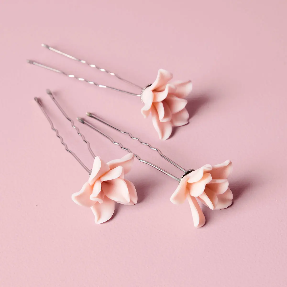 These flower pins are so pretty, the petals are firm but flexible and the pins are great quality as I have come to expect from beach waver products. I look forward to using for an updo