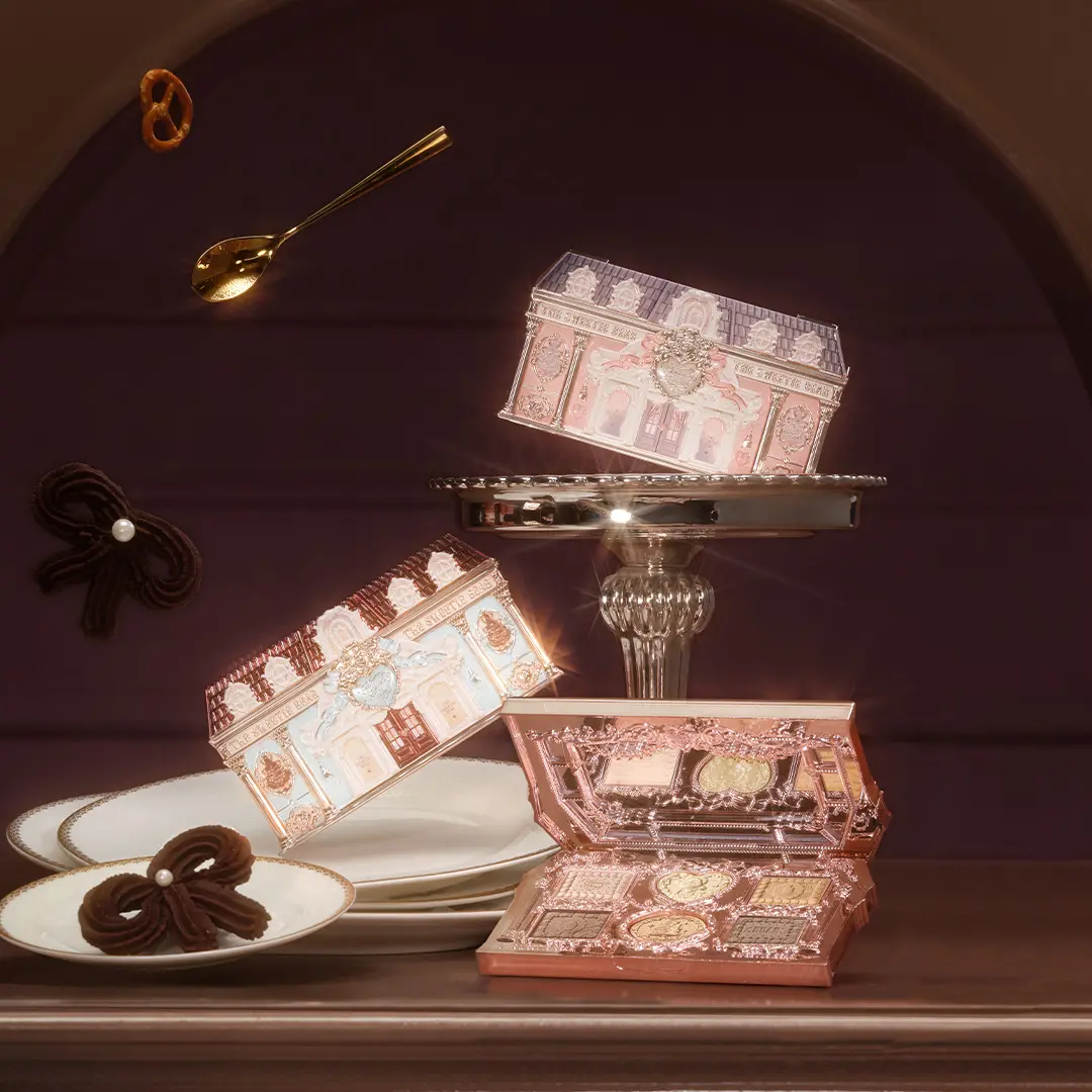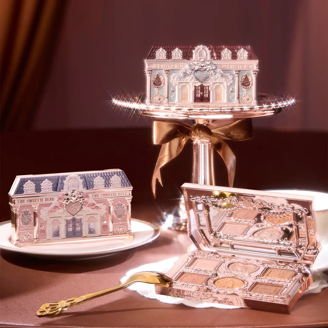 Inspired by Neoclassical architecture, each piece mimics three vibrant "palm-sized boutiques"—adorned with miniature Roman columns, arched windows, and embossed reliefs. A gilded Mansard roof adds subtle depth and sophistication, while dreamy cloud-printed windows bring fantasy to life. It’s not just makeup—it’s your very own tiny "Dream House" for vanity.
