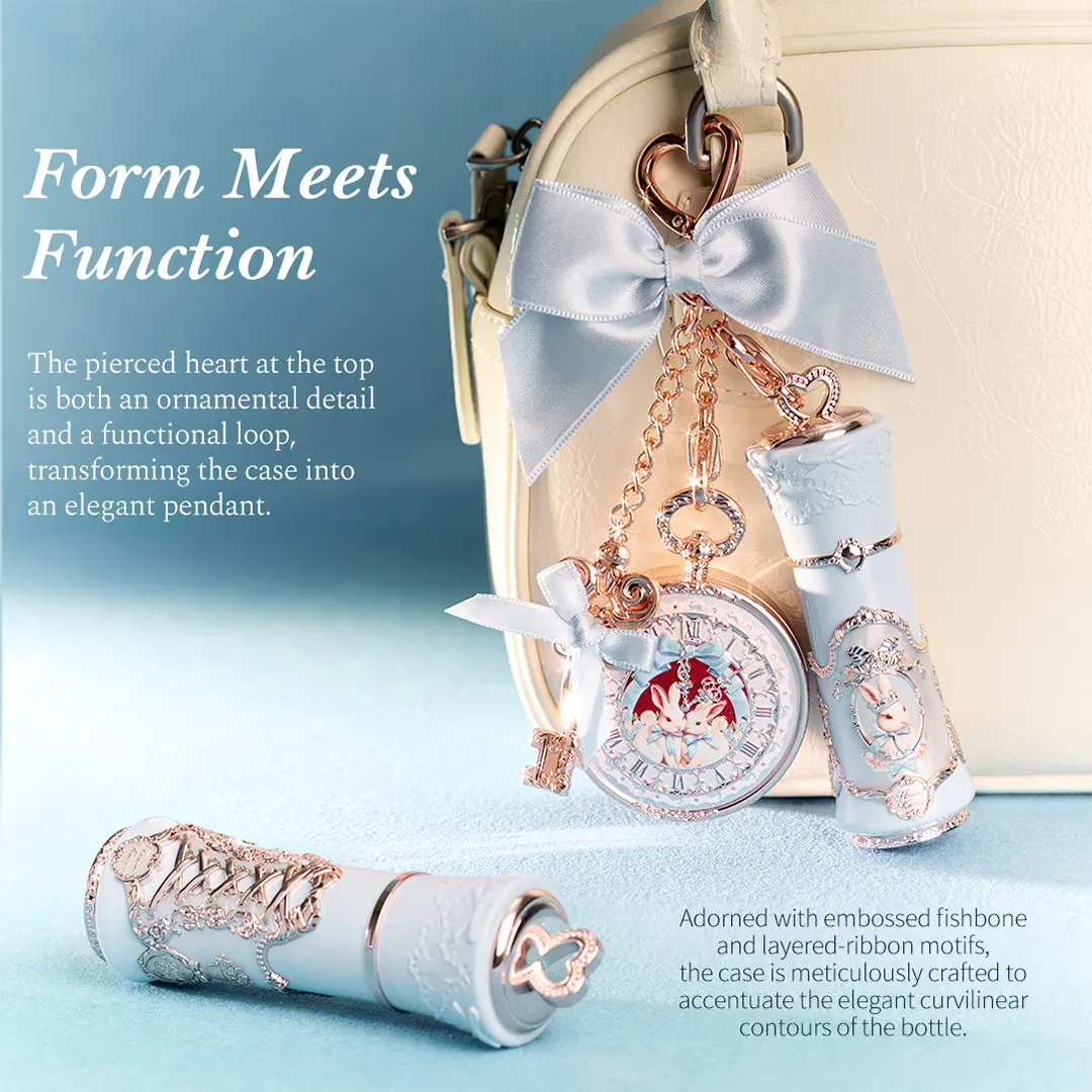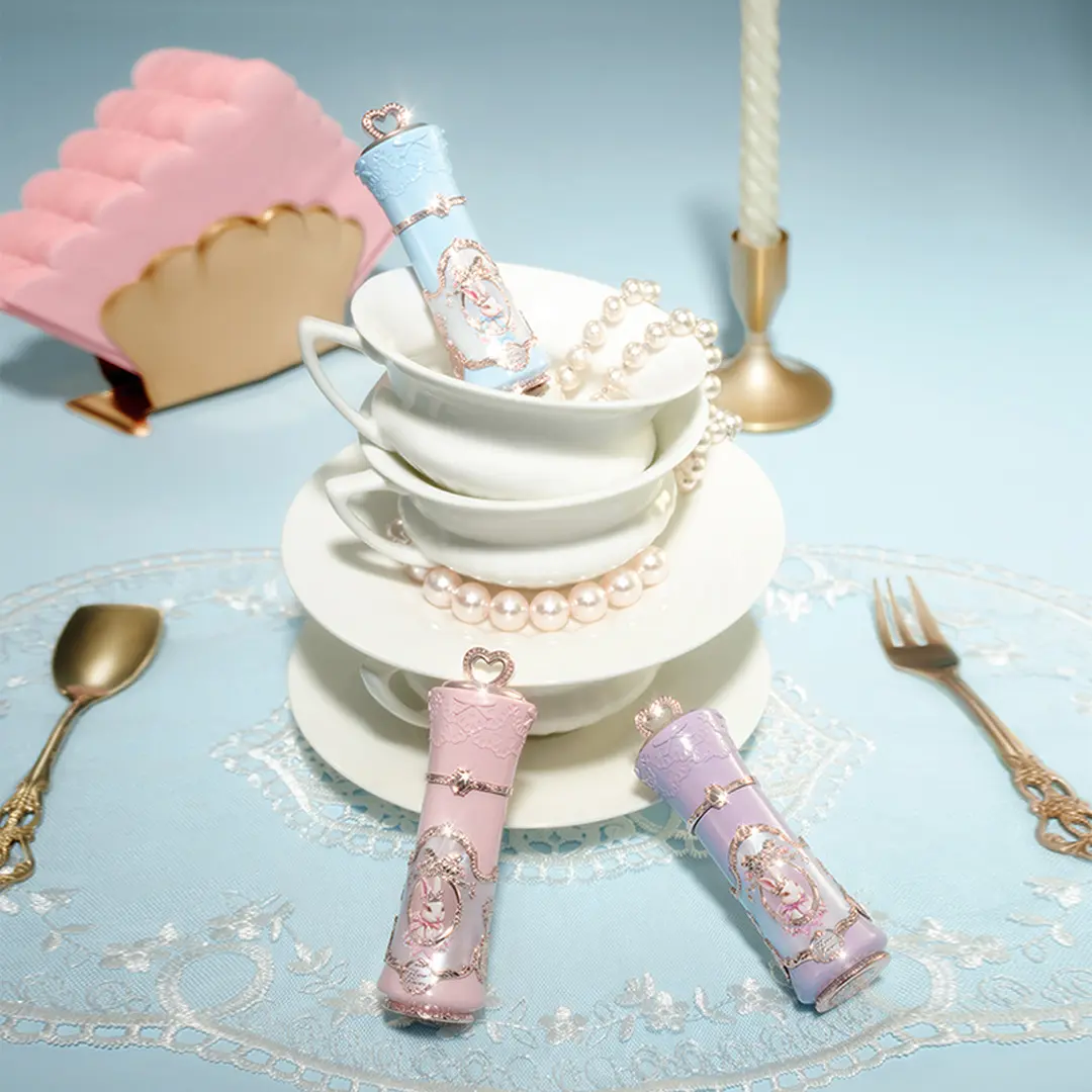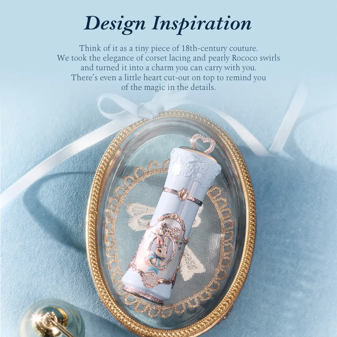 ·Wearable 18th-Century Luxury Charm: Crafted with corset lacing and pearlescent Rococo swirls, this lip cream is a miniature couture piece. Topped with a delicate heart cutout, it turns every application into a glamorous ritual.