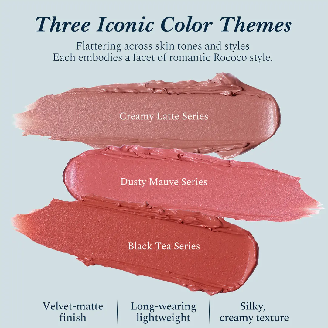 ·Hydrating Matte: Skincare-grade comfort, nourishes lips all day, keeping them smooth and cushiony.