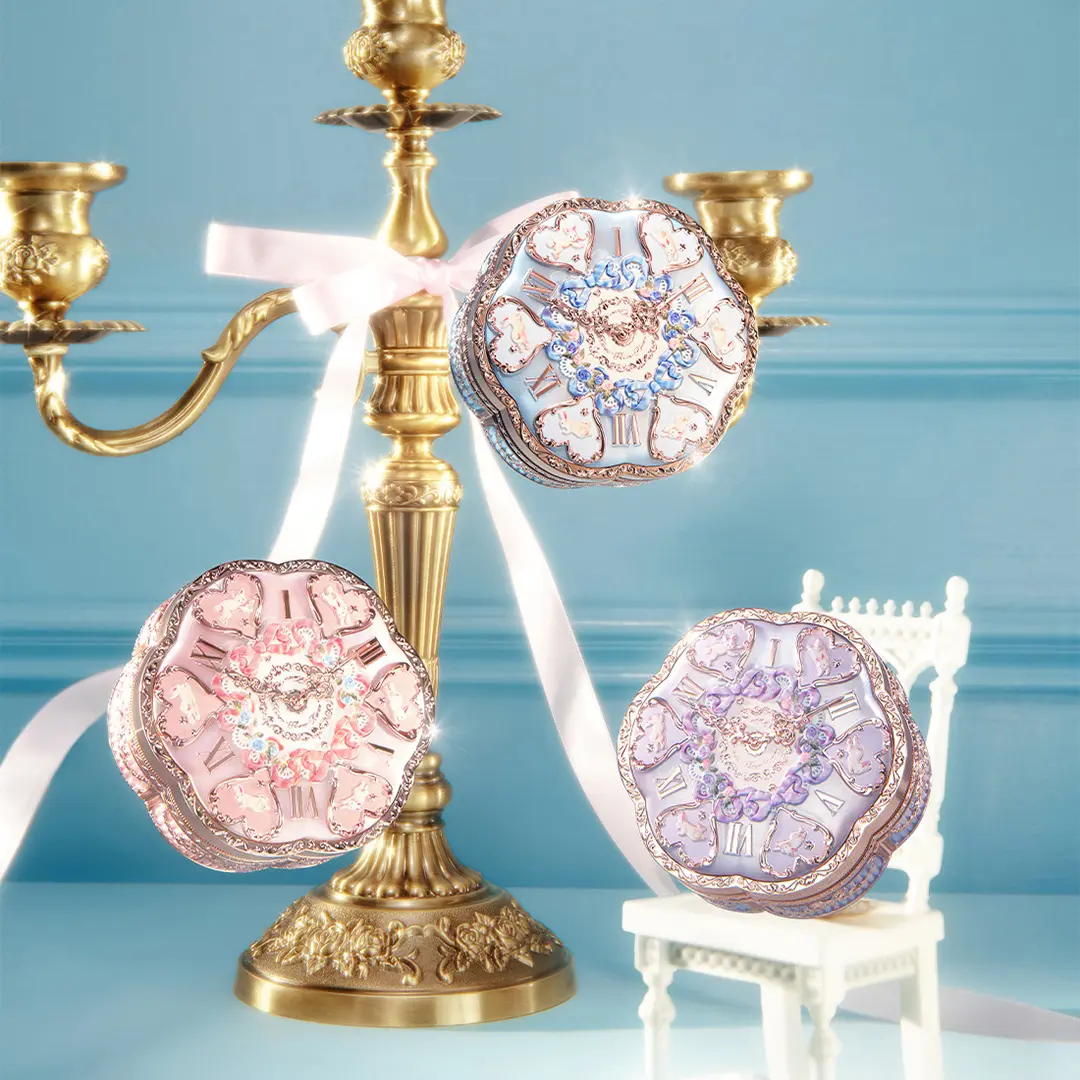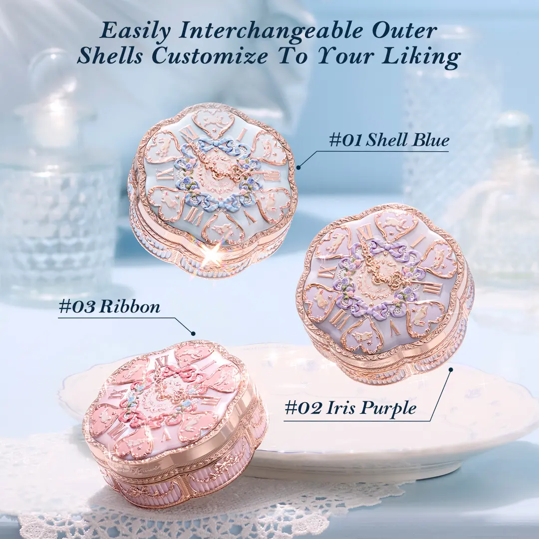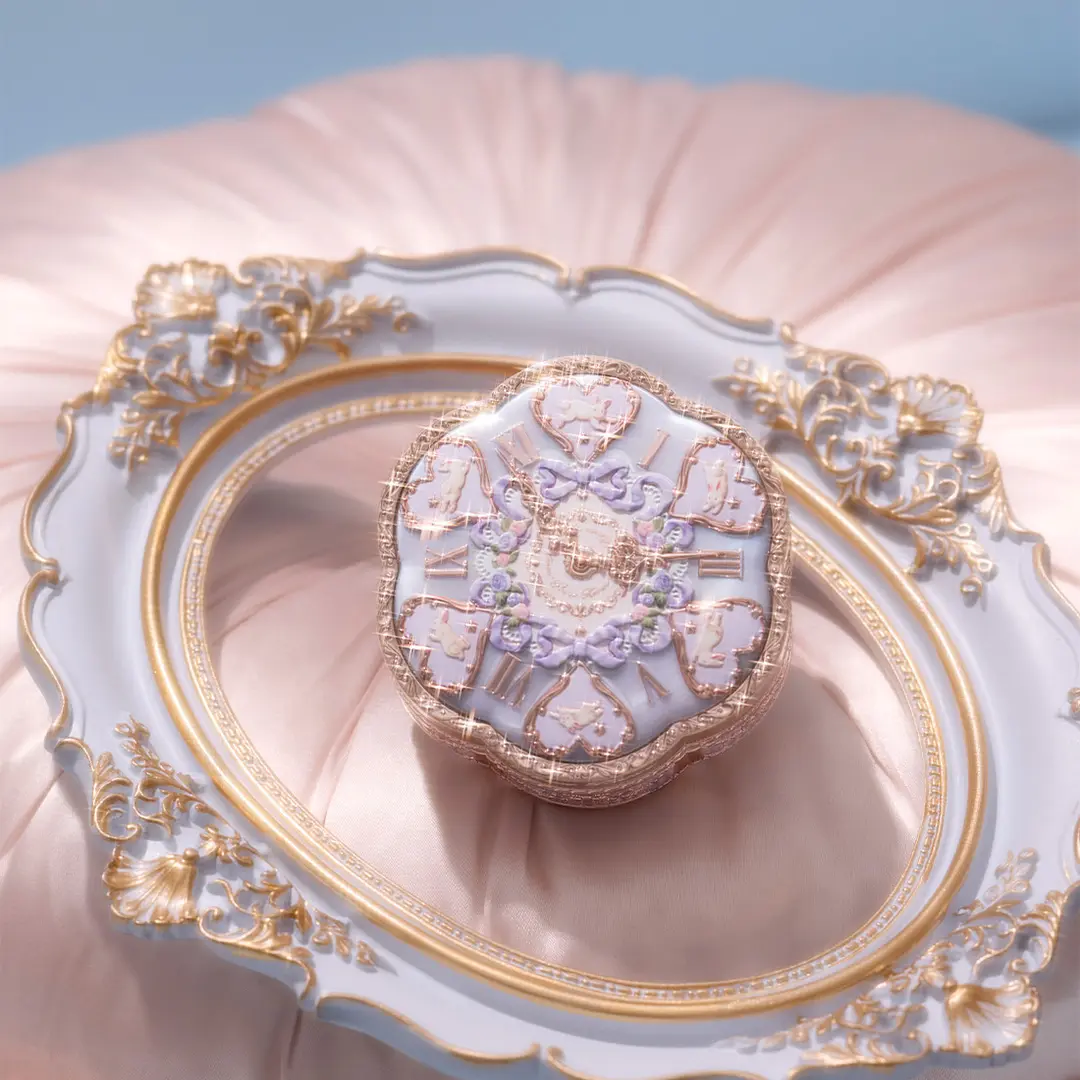 ·Timeless Rococo Heirloom Compact: A petite treasure with elegant Rococo curves, gleaming molten-gold edges, and a pearlescent clock-adorned lid. ️