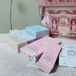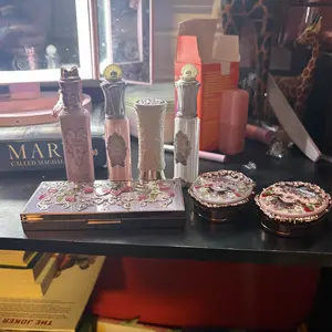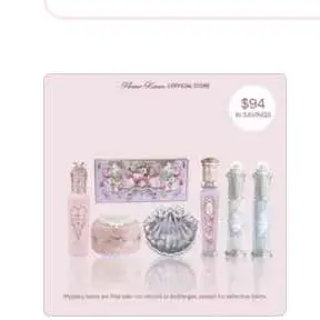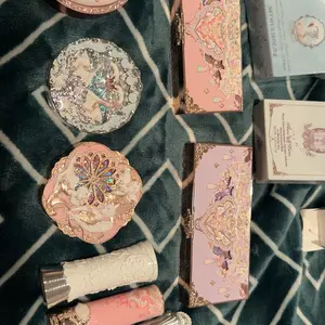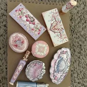 The packaging is cute. Didn't get the one I wanted. Got A, wanted B. The eyeshadow palette is the highlight of the package. The lip glosses are shiny and thick. The blushes are just ok, could be better. Only got one lipstick that is more like a gloss. Cute but NOT WORTH THE PRICE.