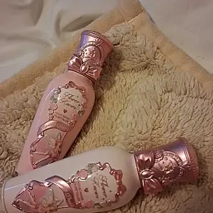 The bottle is so cute and surprisingly heavy, but you can tell that there is only a small space for the actual product. Its a pretty color and fairly buttery. At first its oddly thick and pigmented. At full price theres no way I'd buy it, very cute on sale tho.