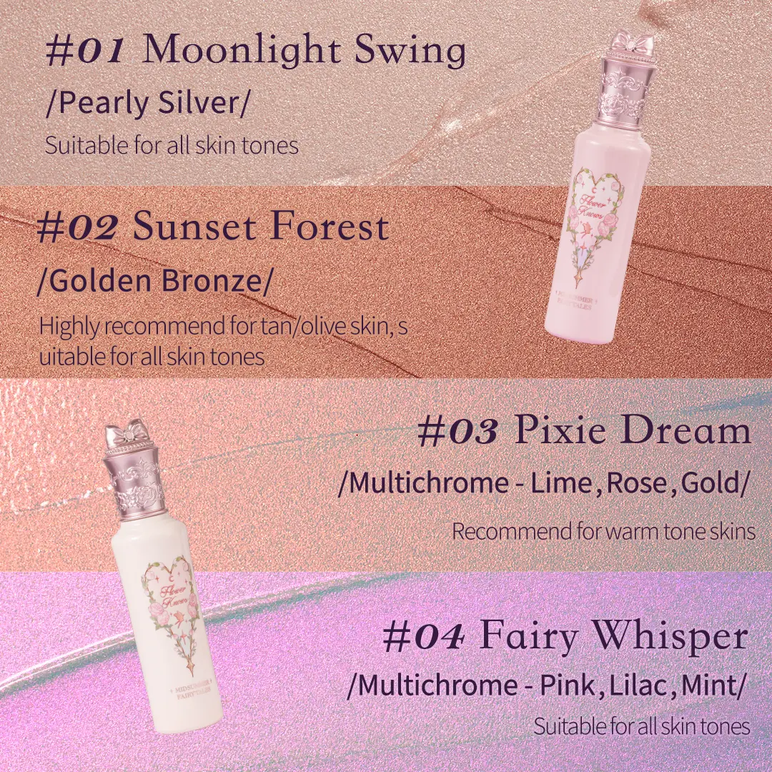 Flower Knows Midsummer Fairytales Collection Liquid Highlighter - Multichrome, Longlasting, Waterproof, Festival Makeup, Christmas Cosmetic Gift:   Dazzle like a fairy in midsummer with highlighter magic that lasts through every sparkle! Meet your new go-to highlighter for 24/7 radiance, this liquid marvel blends a prismatic shimmer that dances with the light. Unlike traditional glitter products, its liquid formula glides effortlessly, melting into your skin without harsh alcohol or residue. The waterproof formula stays vibrant through festival crowds and summer nights. What truly sets it apart is the ultra-pigmented yet featherlight texture, giving fairy touched areas an ethereal glow without weighing down your makeup. As part of the Mythical Creatures Collection, it delivers professional-grade radiance with a  formula that is kind to skin and free from harmful chemicals. Claim your moment of magic, let your inner fairy shine. Tap to discover the highlighter that makes sunlight look like fairy dust. @Flower Knows Makeup #flowerknowsmakeup #tiktokshopcreatorpicks #giftideas #tiktokshopfinds #tiktokshopcreatorpicks