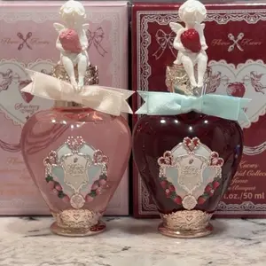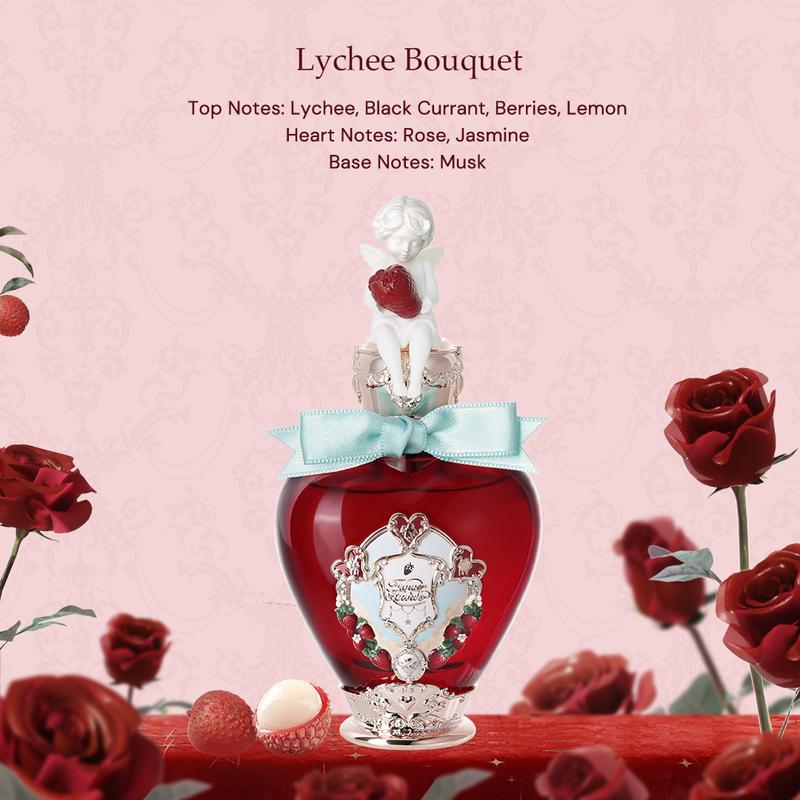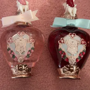 Lychee rose smells wonderful. One of my favorites, but the scent is very short lasting. It lasts maybe 15 minutes with multiple sprays before becoming very faint. The strawberry one smells awful in my opinion. Very cheap smelling. Both perfumes came with deep white scratches on the bottles.