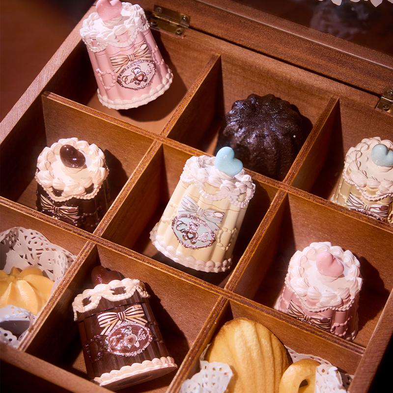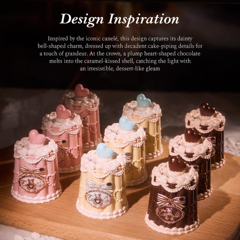 It boasts the dessertās charming bell shape, paired with delicate cake-piping details for an elegant touch. To top it off, a plump heart-shaped āchocolateā sits on a caramel-like shellāglimmering with irresistible luster under light, blending functionality with indulgent design.