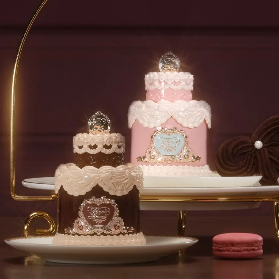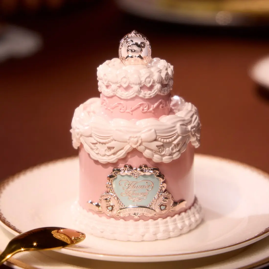 ·Drawing inspiration from the unique artistry of French desserts, this perfume bottle boasts a double-layered design that echoes the rich, multi-dimensional texture of a cream cake. A ring of rounded, shell-shaped 3D cream swirls adorns the bottle, while its glass body mimics a cake base—finished with a vintage metal plaque for a luxuriously dreamy touch.