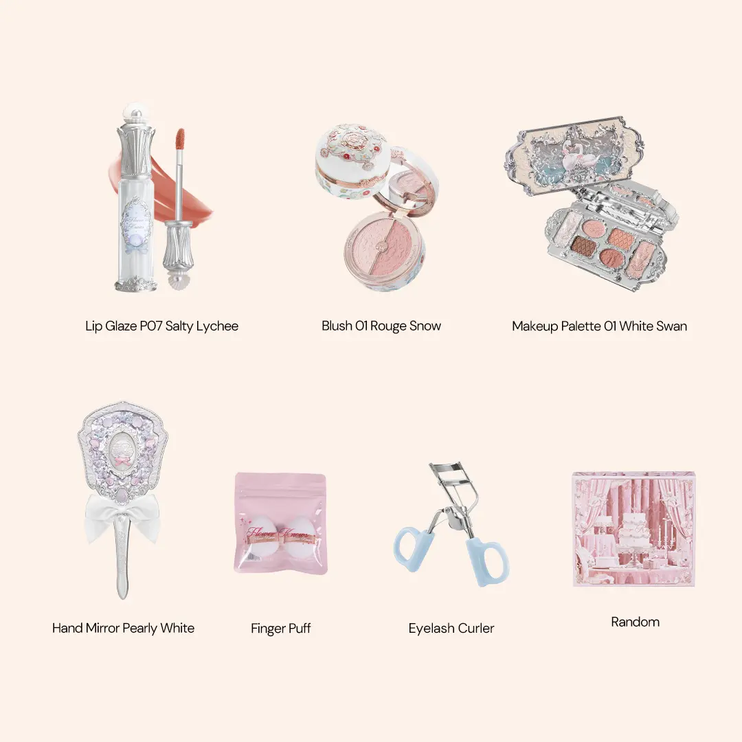 The Flower Knows Tutu Grace Set is a must-have makeup kit with 7 pieces. It includes an eyeshadow palette, lip gloss, blush, a mirror, and an eyelash curler. This set is the best choice for holiday gifts. Perfect for enhancing your makeup routine, it offers a comprehensive selection of essentials.