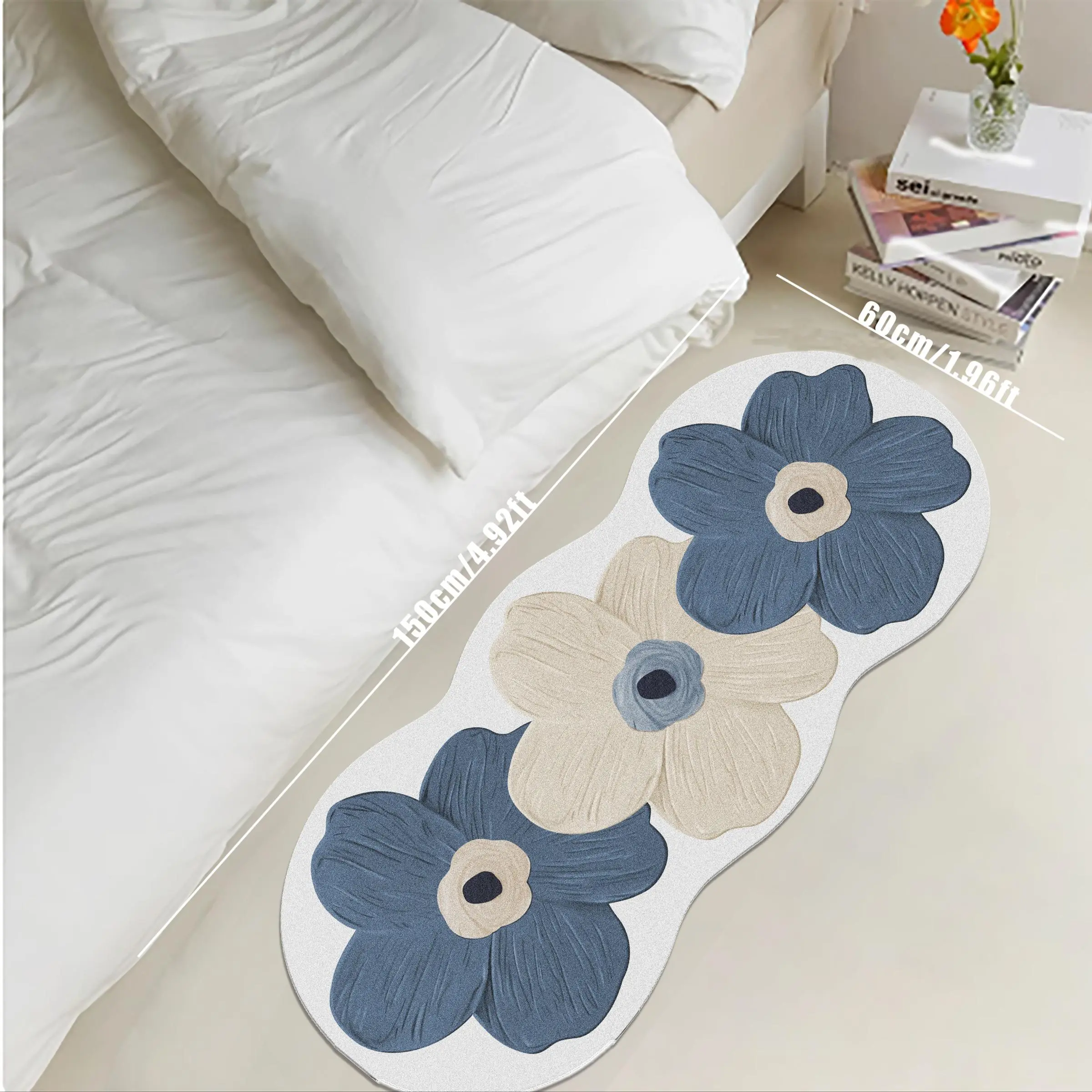 60x150cm-1.96x4.92ft,1PC, Light blue three flowers