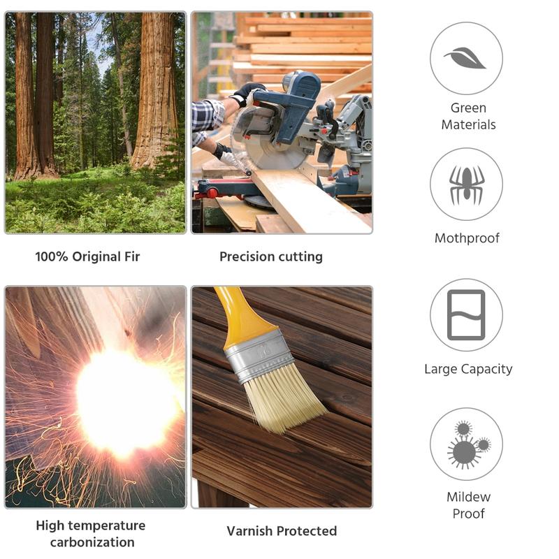 7.Carbonized Treatment: Undergoing carbonized treatment, this wooden plant shelf increases the stability of the structure and prolongs the service life. You can put it indoor or outdoor. High-temperature carbonized fir wood ensures smooth surface and good deformation resistance