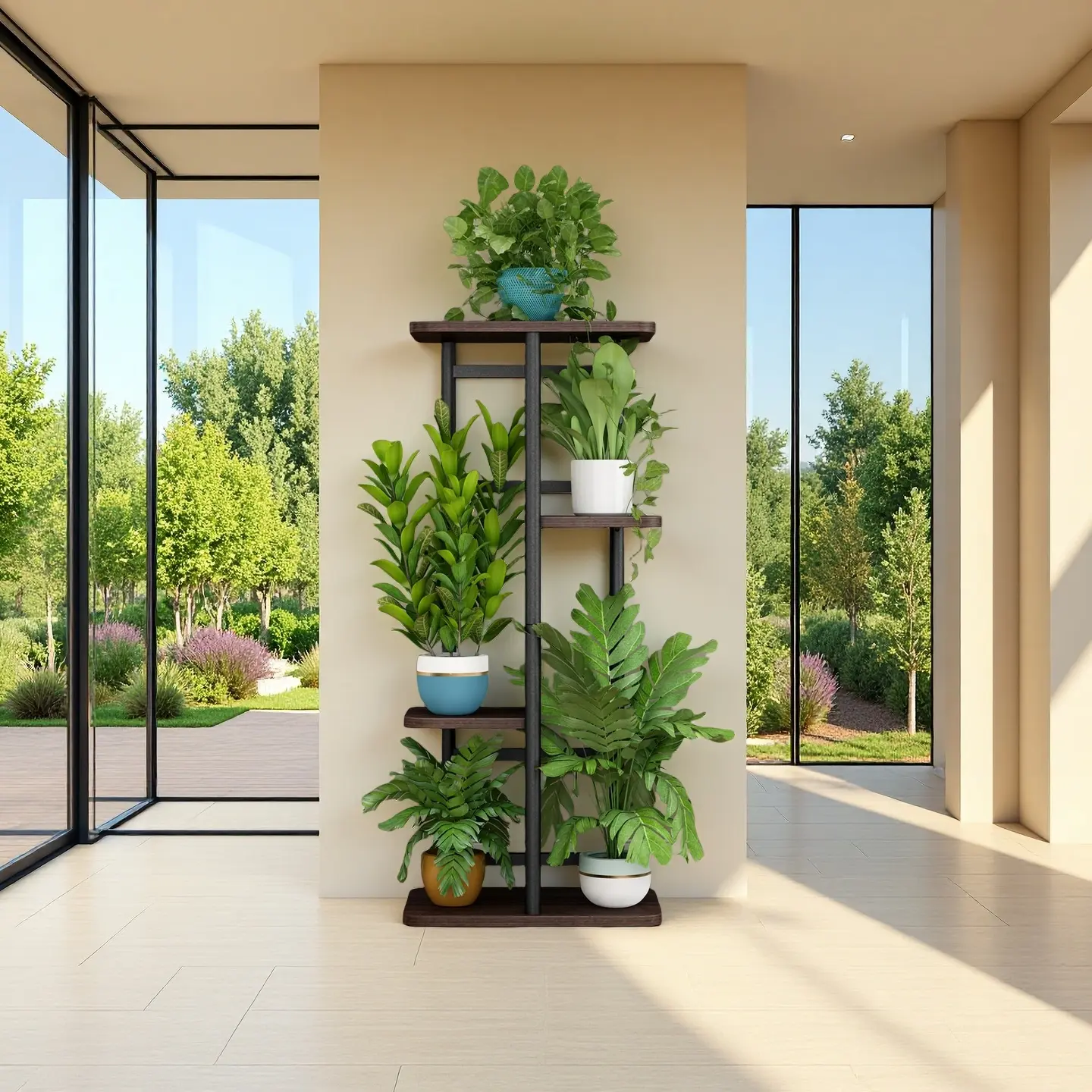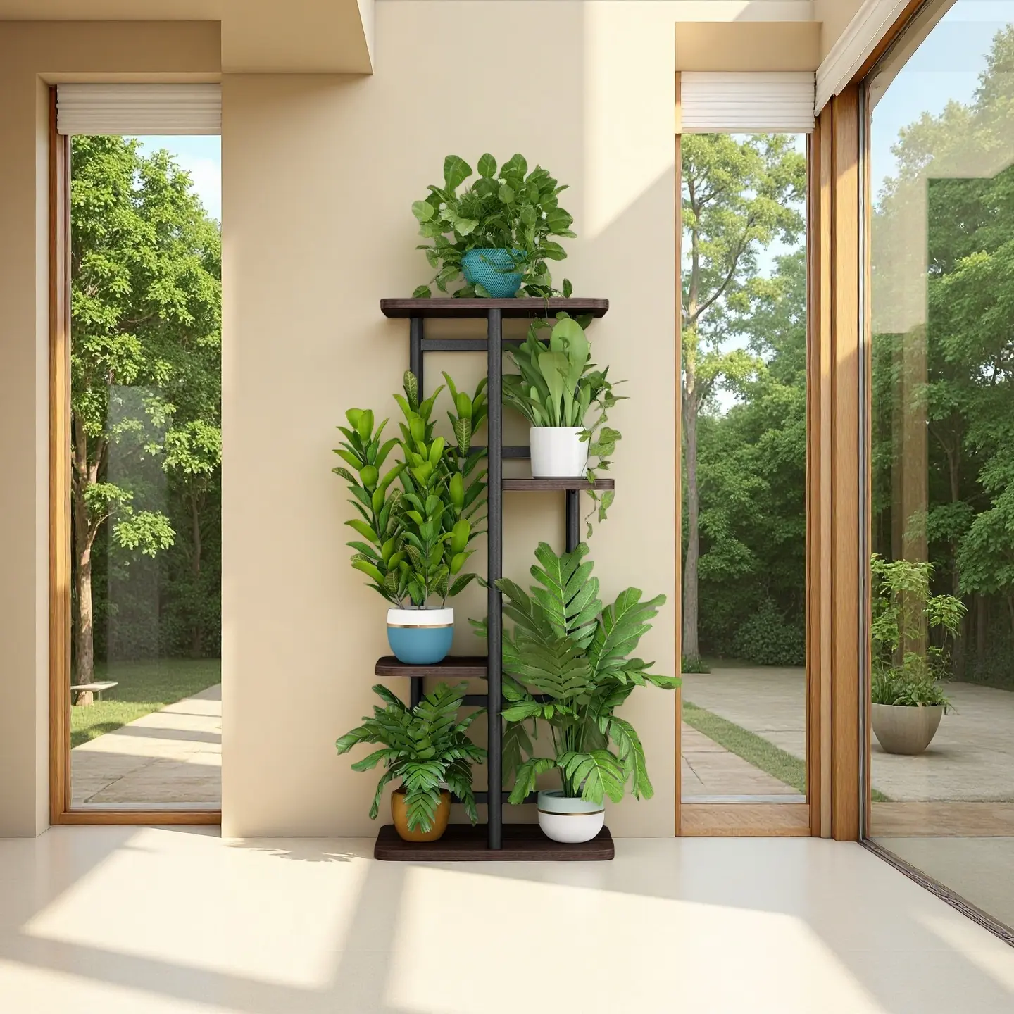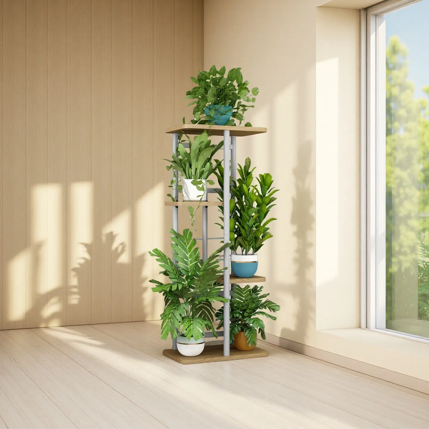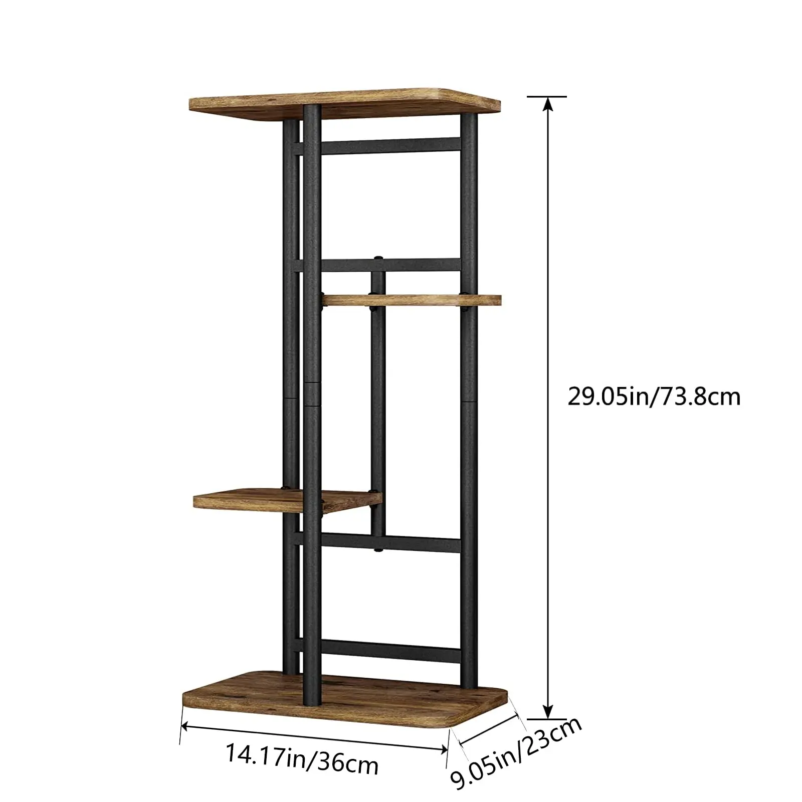 Measuring 14.17"L x 9.05"W x 29.05"H (36x23x73.8cm), this stand holds up to 5 pots securely. The widened base ensures unmatched stability, ideal for high-traffic areas like balconies or living rooms. Its durable design withstands daily wear and tear for years.