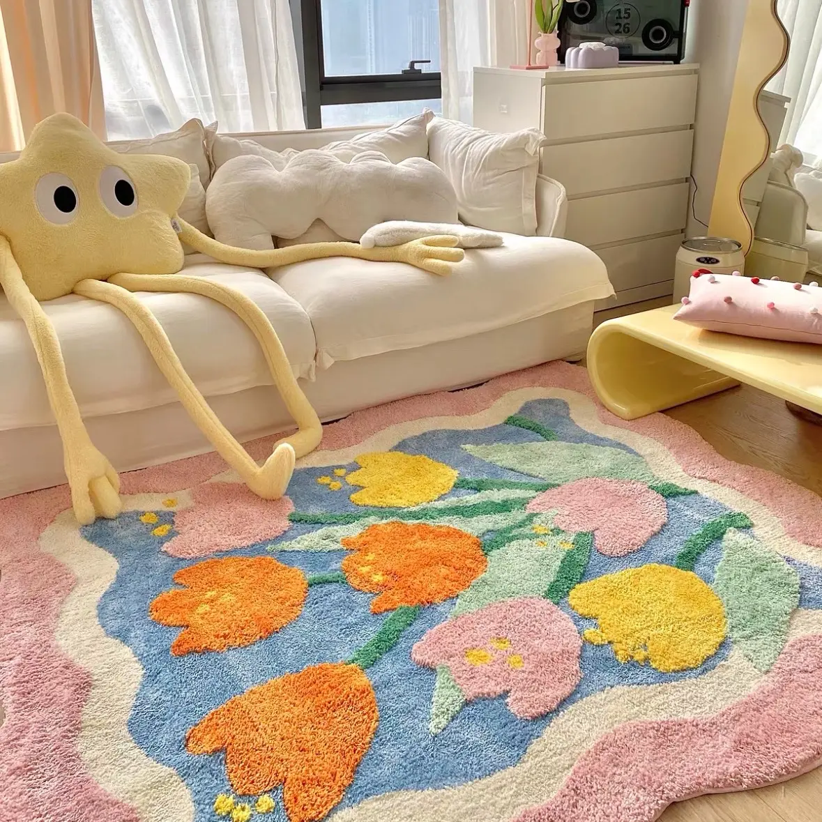 Transform your living space with our Flower Rugs, a colorful and stylish home decor piece. This tufted rug is designed to enhance the aesthetic appeal of any room, making it a perfect addition to your living room.
