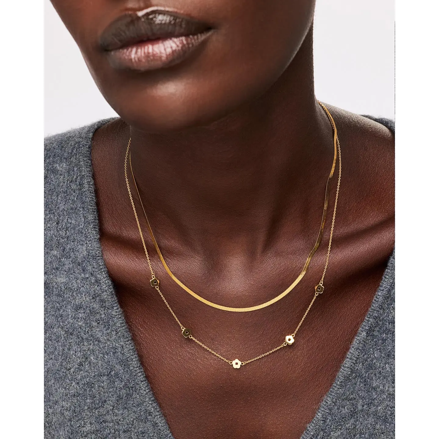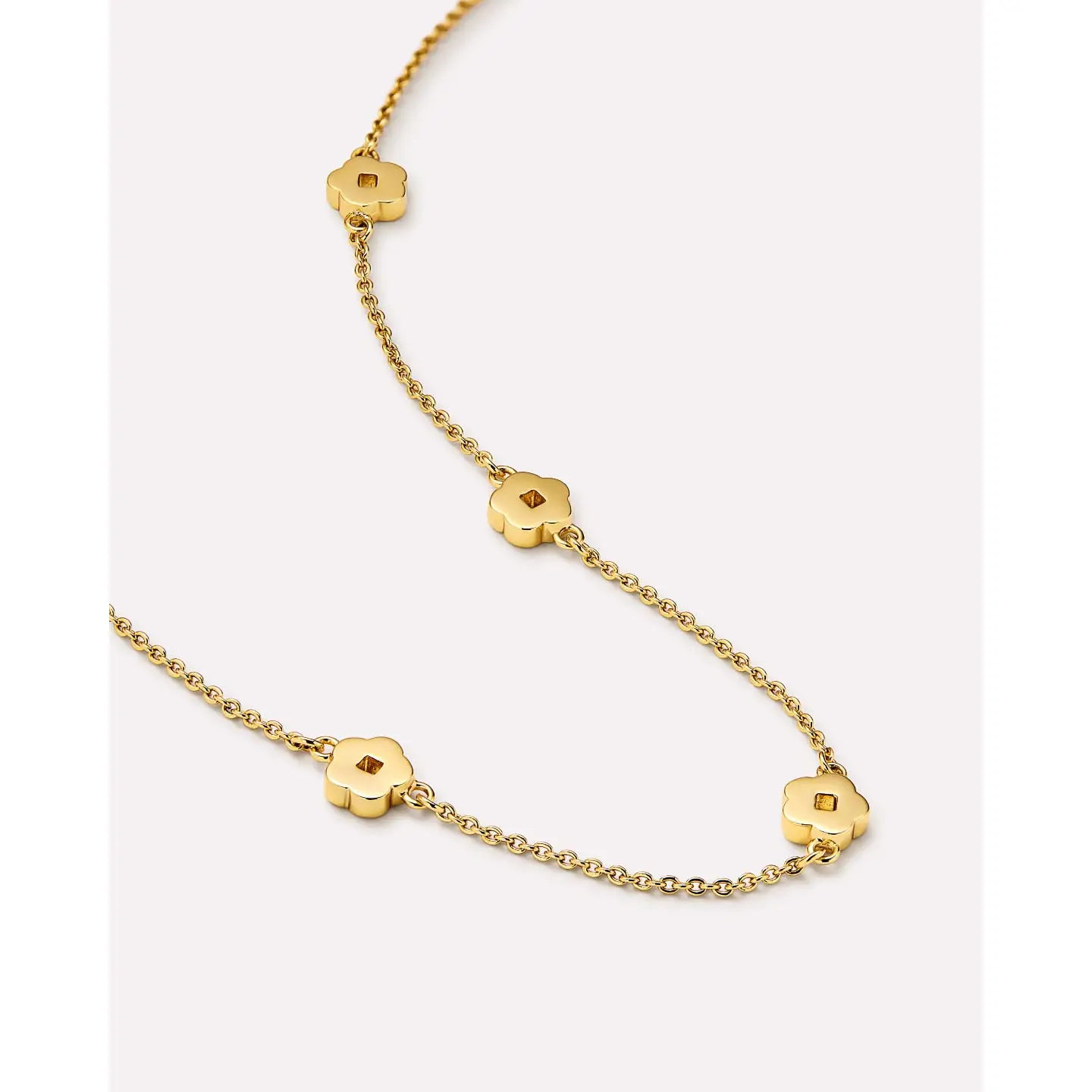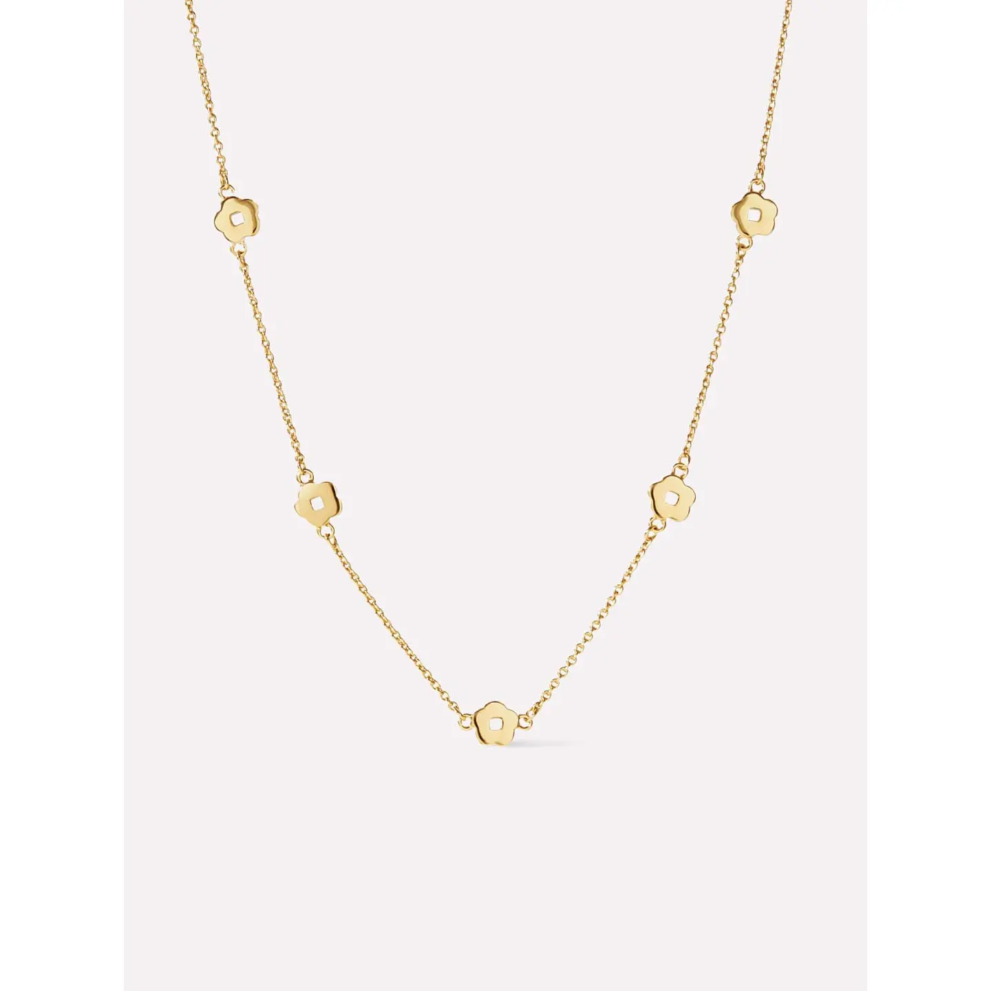 Blossom and bloom this spring with our timeless Rowena flower station necklace. This 14K gold-dipped chain necklace features five intricately cut flowers that will never wilt. Wear it alone or mix and match with other floral-inspired pieces to create your unique style.