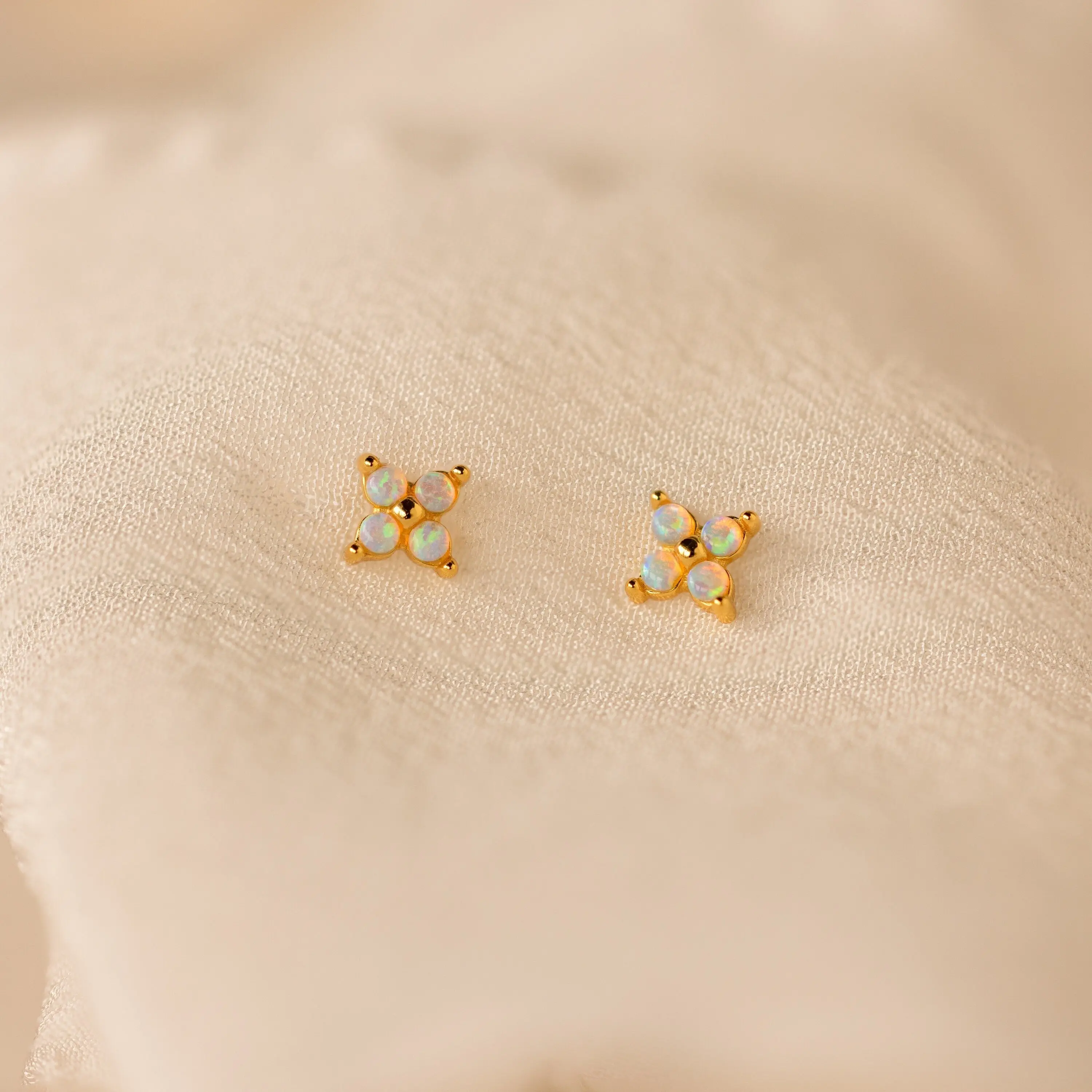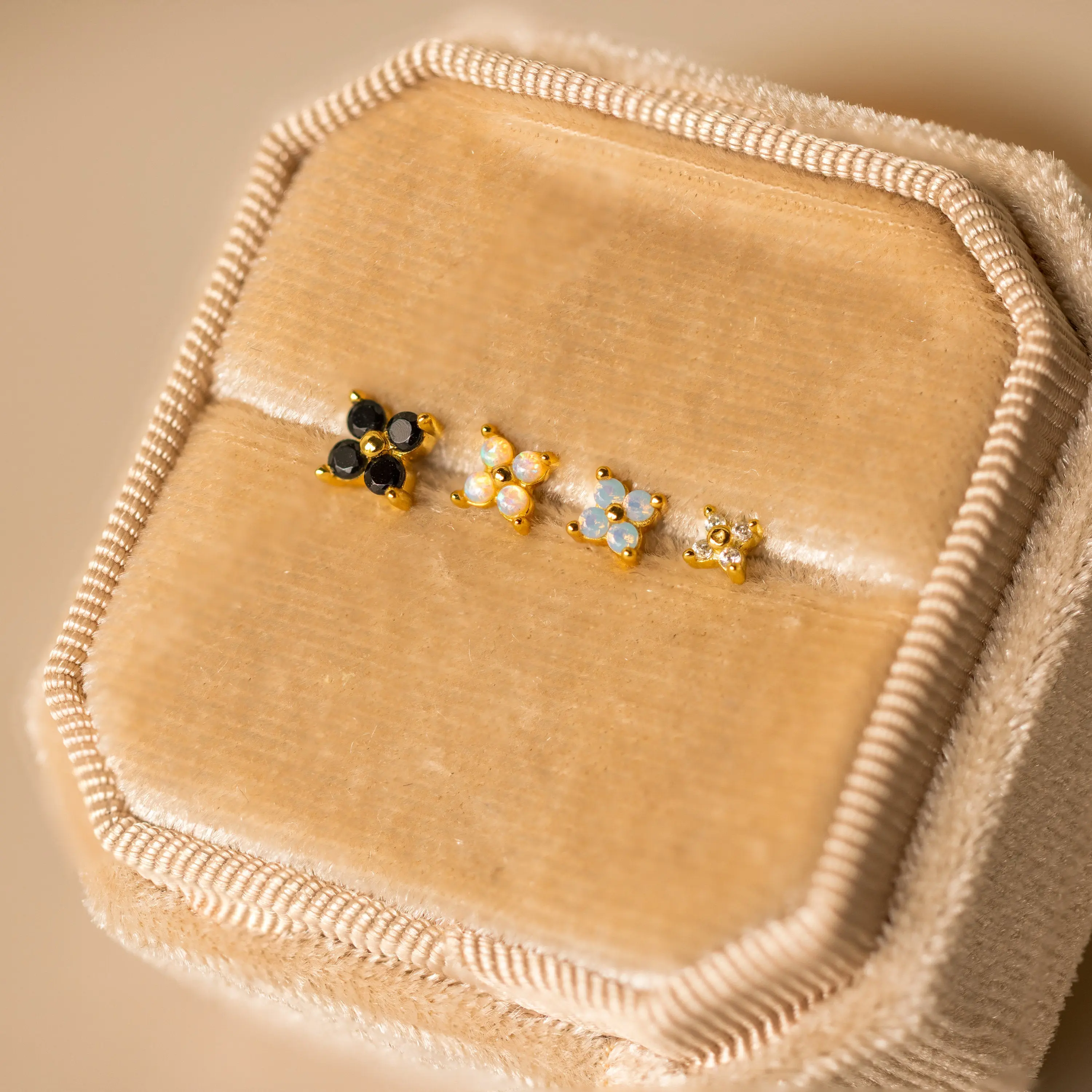 ·Dimensions: 4mm CZ Opal Flower | 10.5mm Post | 20 Gauge