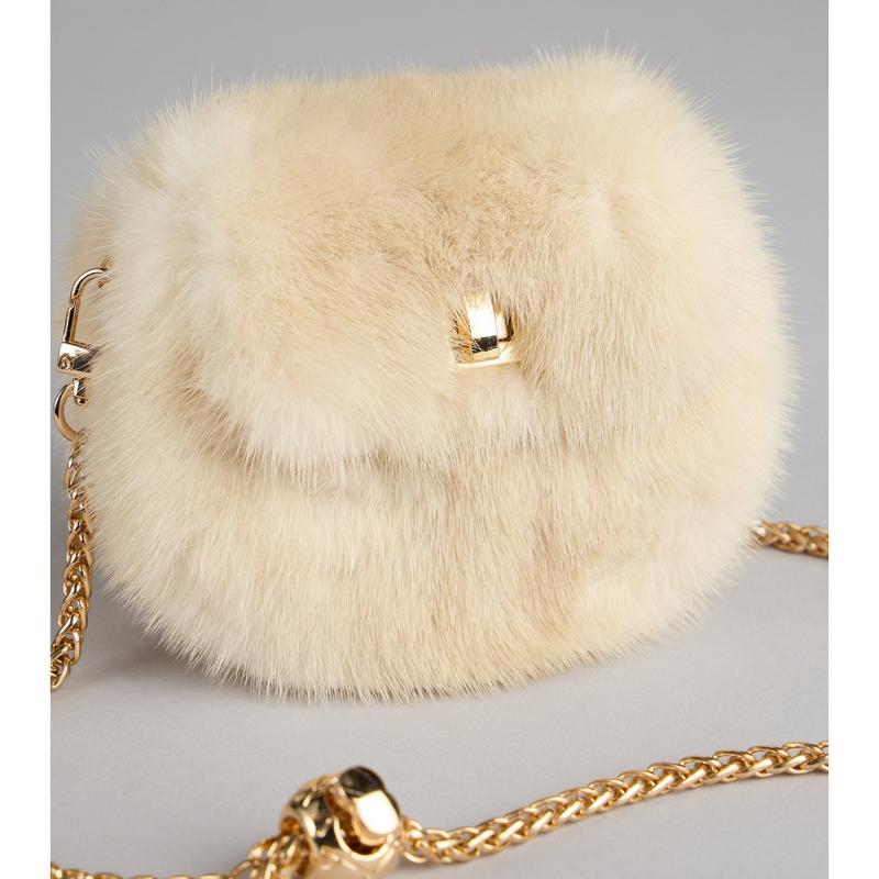Soft, chic, and totally touchable. This faux fur mini bag pairs a plush finish with a gold chain strap—because cozy can still be high-glam.