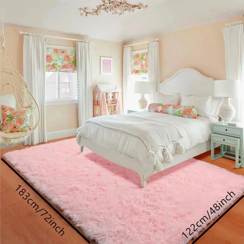 Minimalist Solid Fluffy Large Rug, Square Plush Mat with Non Slip Backing, Home Decorative Fluffy Area Rug for Living Room & Bedroom