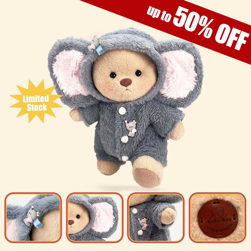 Getahug Fluffy Little Elephant Pushies Handmade Jointed Gift, White Outfit, Plush Toys & Stuffed Animals, Teddy Bear grateful kids gifts