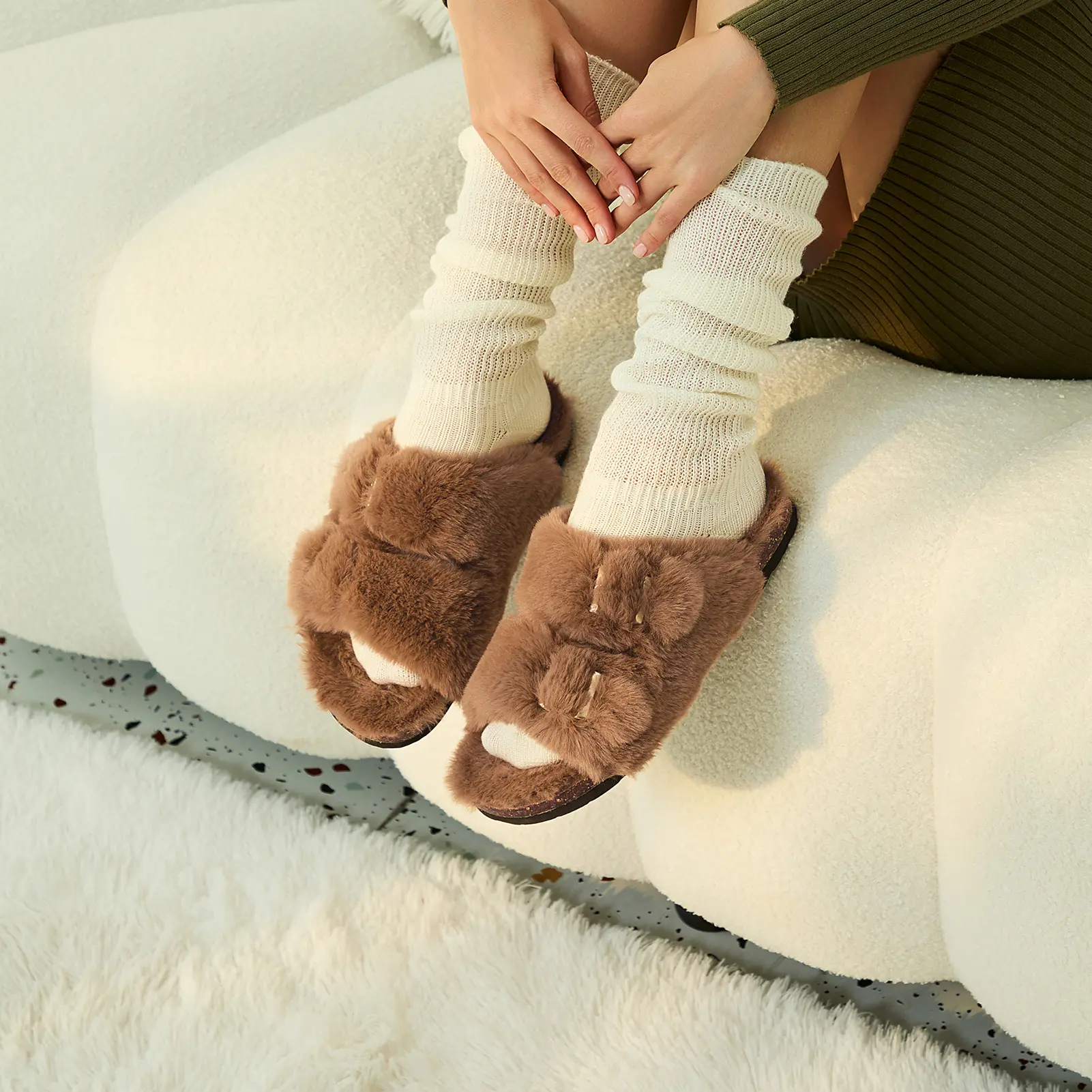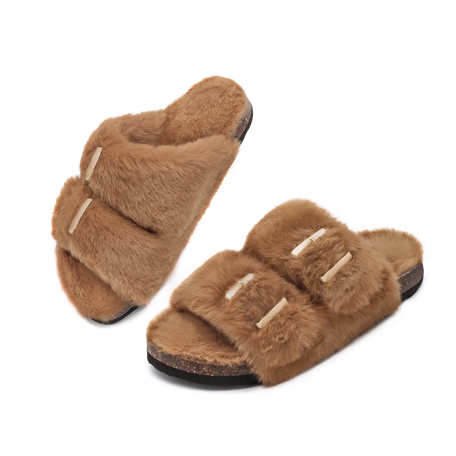 ·Fashionable Design: Equipped with adjustable buckles for personalized fit, these cute fluffy slippers feature a classic two-strap silhouette and an open-toe design for a modern, lazy chic feel