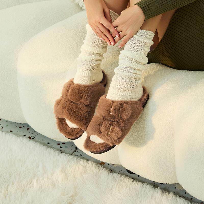 ·Plush Upper: Women's fuzzy slippers are made of premium faux fur, soft and smooth to the touch, the comfy plush lining gently wraps your feet and keeps you warm on cool or cold weather