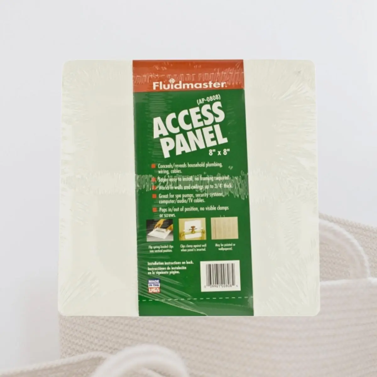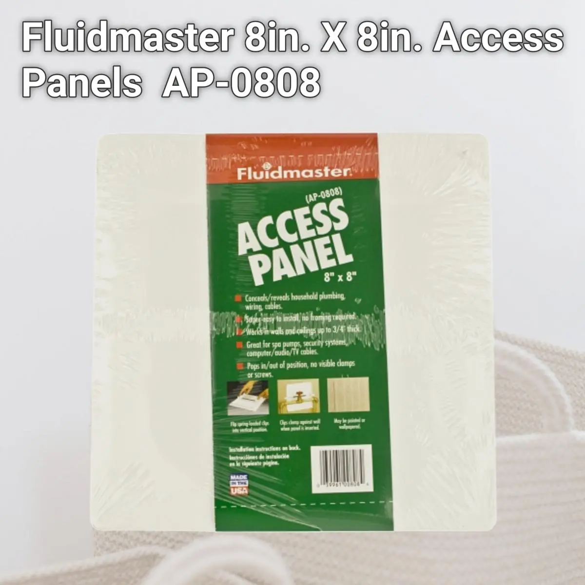 Conceals and reveals household wiring, plumbing Super-easy to install No framing required May be painted or wallpapered Works on walls and ceilings up to .75" thick 8" x 8" Length: 1 Width: 9.25 Height: 9.25