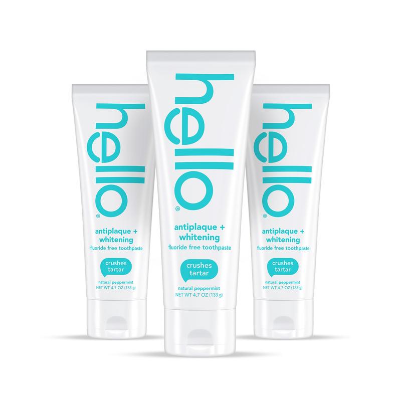 Say hello to a thoughtfully crafted fluoride free toothpaste that helps whiten teeth and crush tartar at the same time with hello antiplaque and whitening toothpaste.