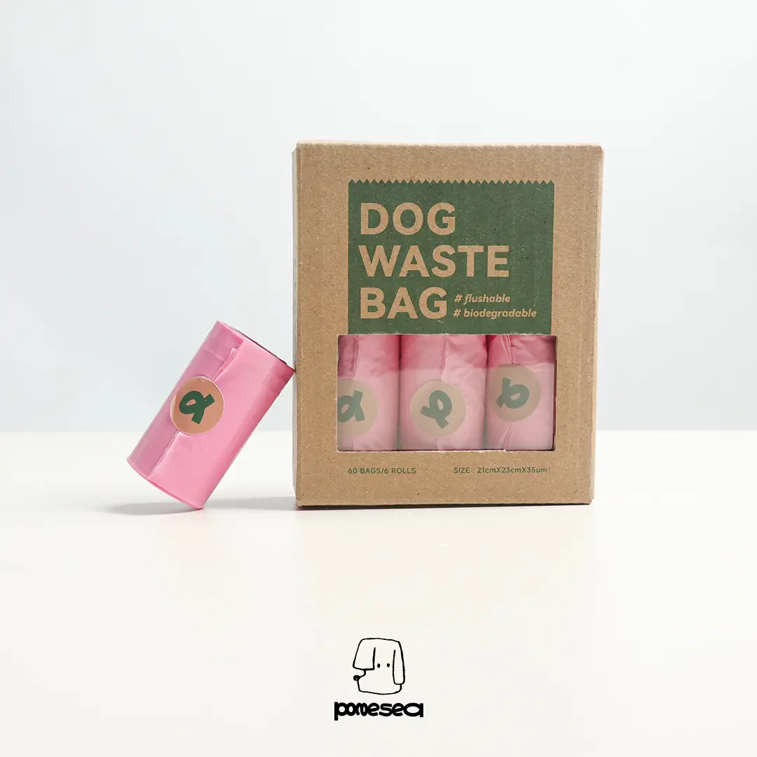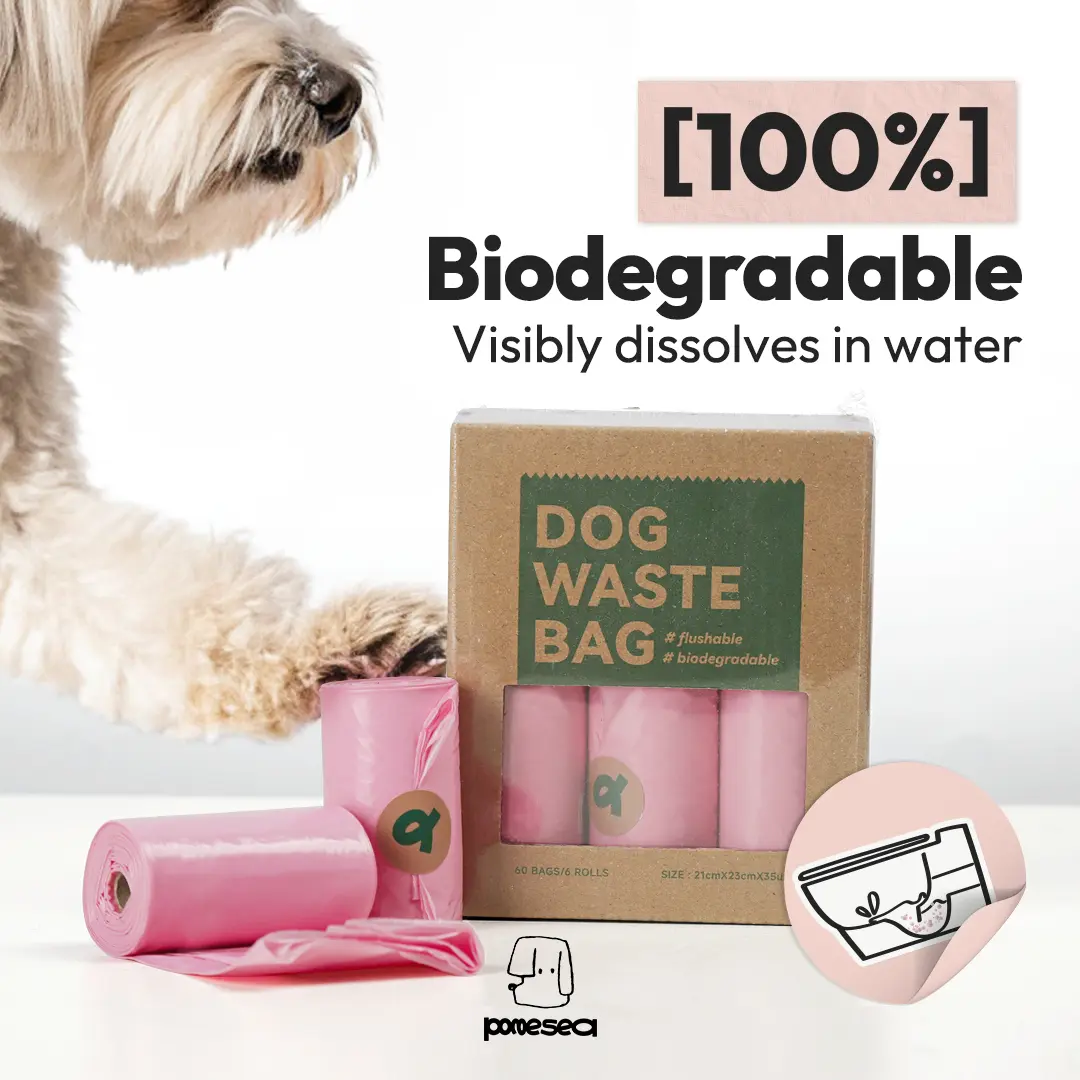 POMESEA Biodegradable Dog Poop Bags, Visibly dissolves in water, Extra Thick, Eco-Friendly & Water-Soluble, Biodegradable Waste Bags for Toilet Disposal, 60 Count (6 Rolls)