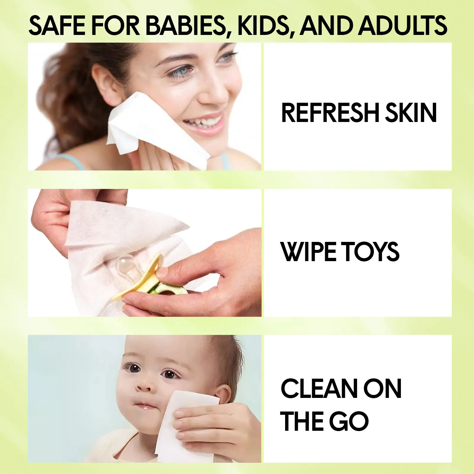 ·Versatile for Everyday Use: Safe for babies, kids, and adults.Ideal for diaper changes, hand cleaning, and quick refreshment, these wipes come in a resealable pack to maintain moisture.